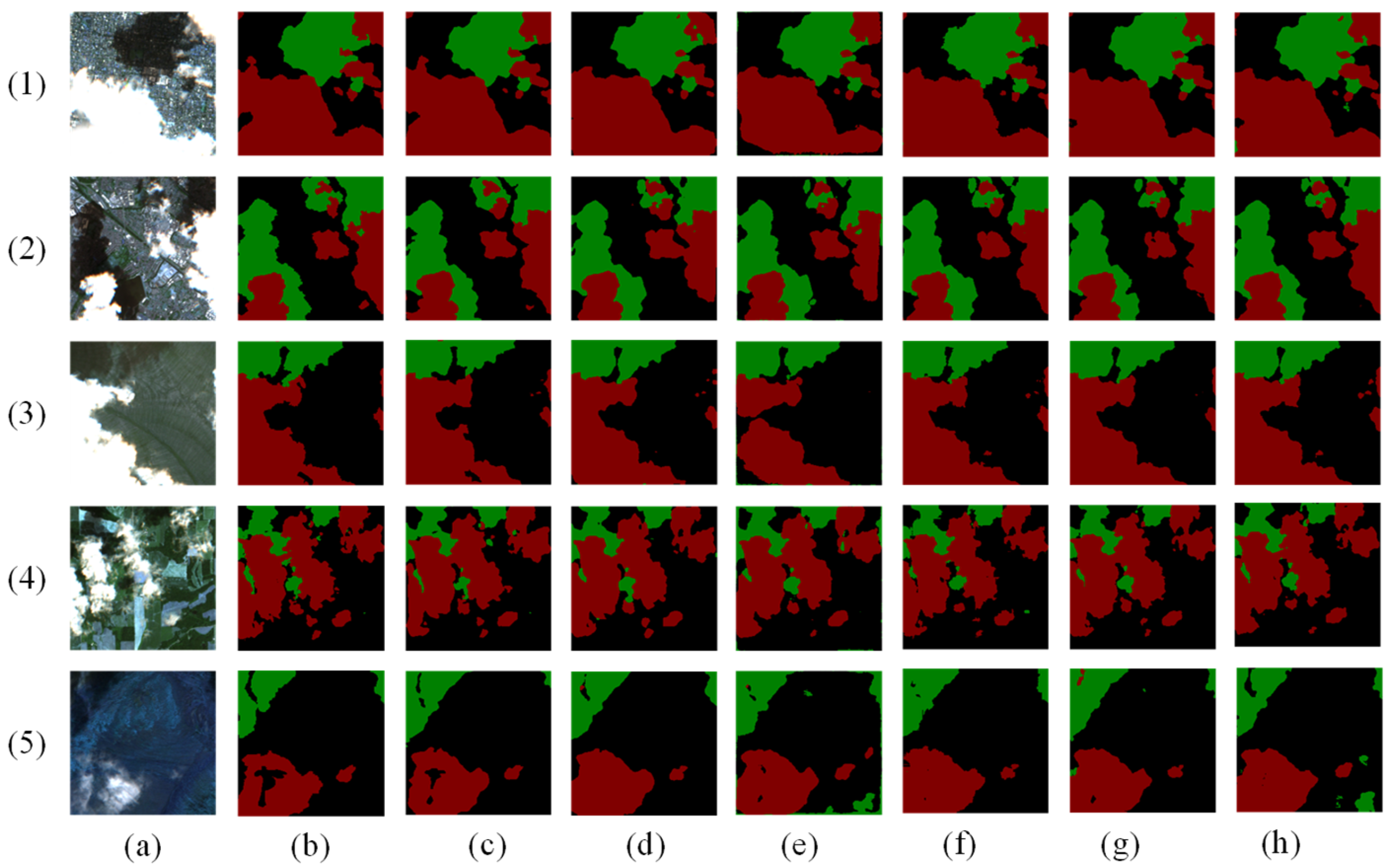 - Xu, M.; Wang, S.H.; Guo, R.Z.; Jia, X.; Jia, S. Review of Cloud Detection and Removal Methods for Remote Sensing lmages. J. Comput. Res. Dev. 2024, 61, 1585–1607. [Google Scholar]