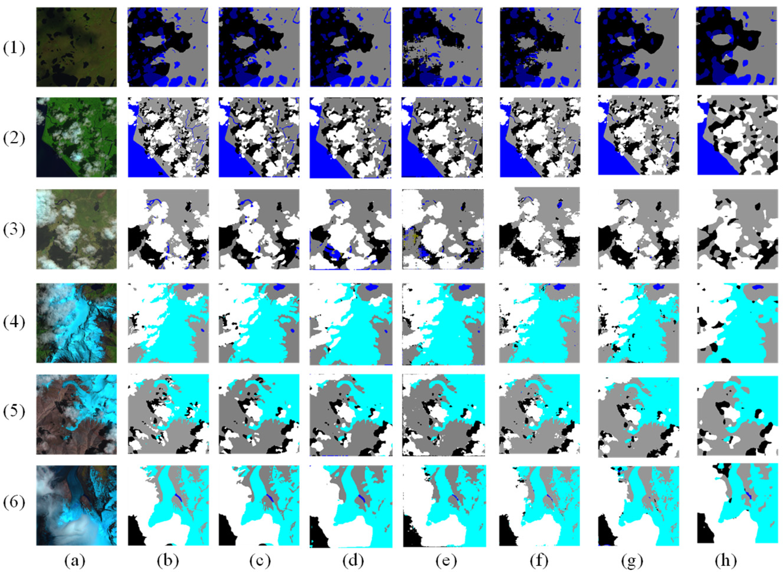 - Choi, H.; Bindschadler, R. Cloud detection in Landsat imagery of ice sheets using shadow matching technique and automatic normalized difference snow index threshold value decision. Remote Sens. Environ. 2004, 91, 237–242. [Google Scholar] [CrossRef]