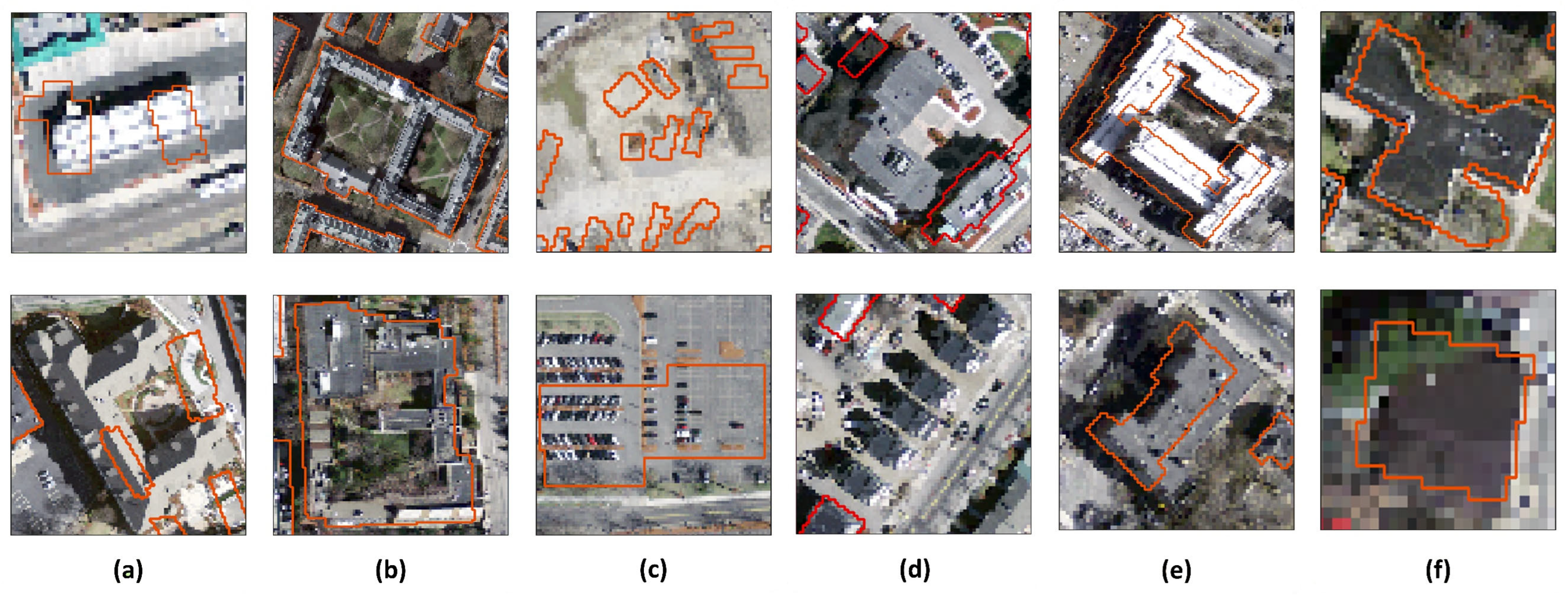 - Tang, Q.; Li, Y.; Xu, Y.; Du, B. Enhancing building footprint extraction with partial occlusion by exploring building integrity. IEEE Trans. Geosci. Remote Sens. 2024, 62, 5650814. [Google Scholar] [CrossRef]