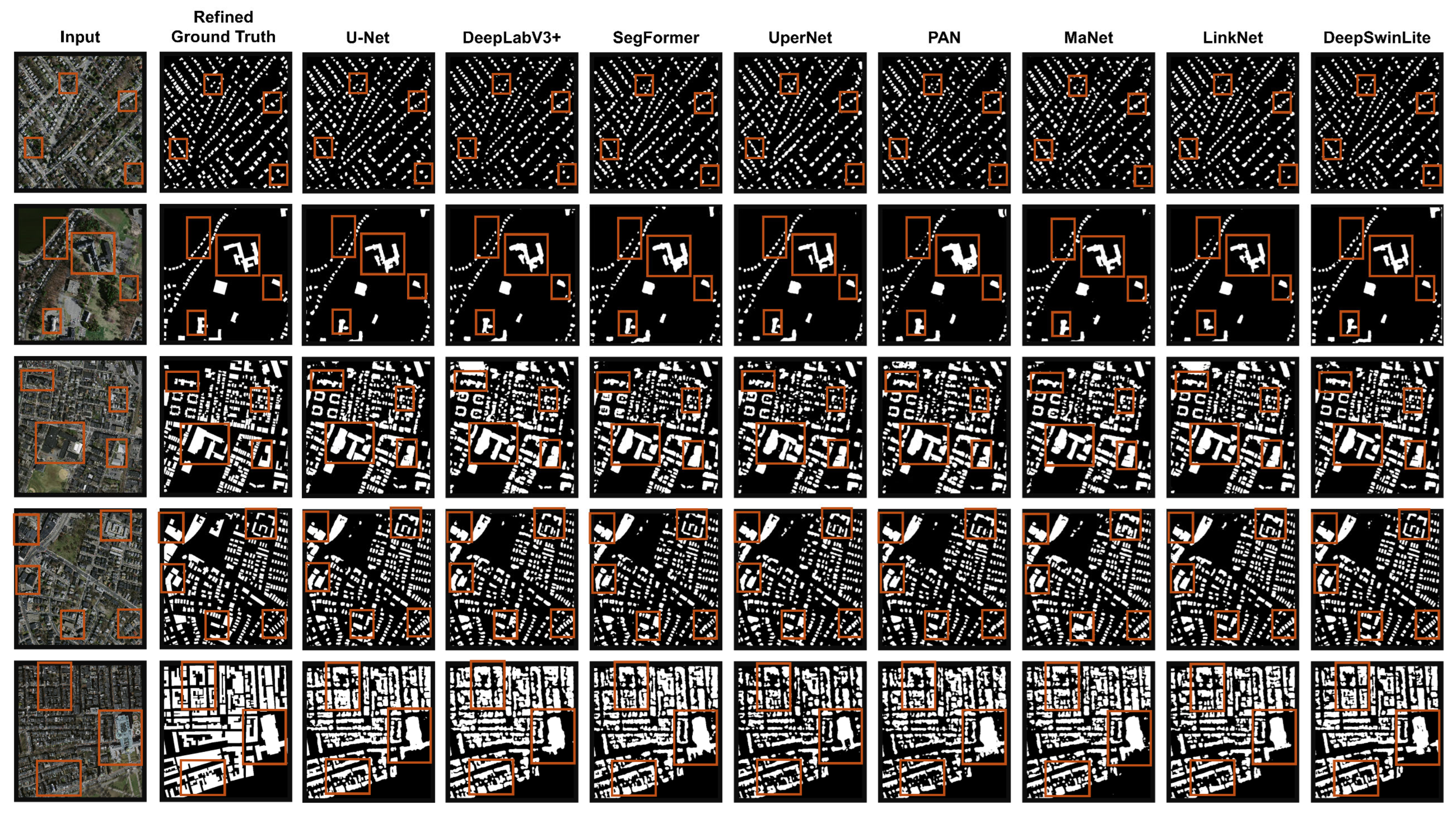 - Refined Dataset and Reproducibility: We identified and corrected annotation errors in the original Massachusetts dataset and released the refined version with source code to ensure reproducibility and foster further research.