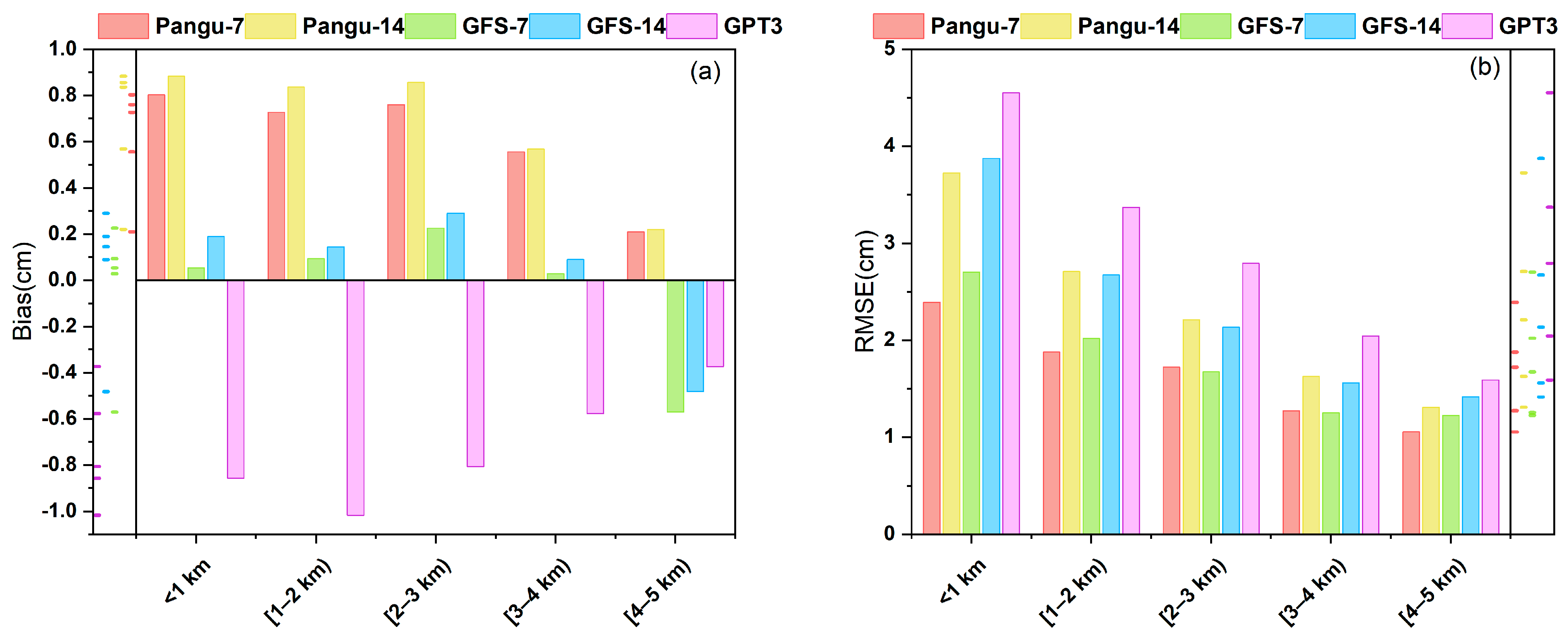 - Huang, L.; Wang, Y.; Bi, H.; Zhu, G.; Liu, L.; Jiang, W. Initial results of atmospheric weighted mean temperature estimation with Pangu-Weather in real-time GNSS PWV retrieval for China. Gps Solut. 2025, 29, 48. [Google Scholar] [CrossRef]