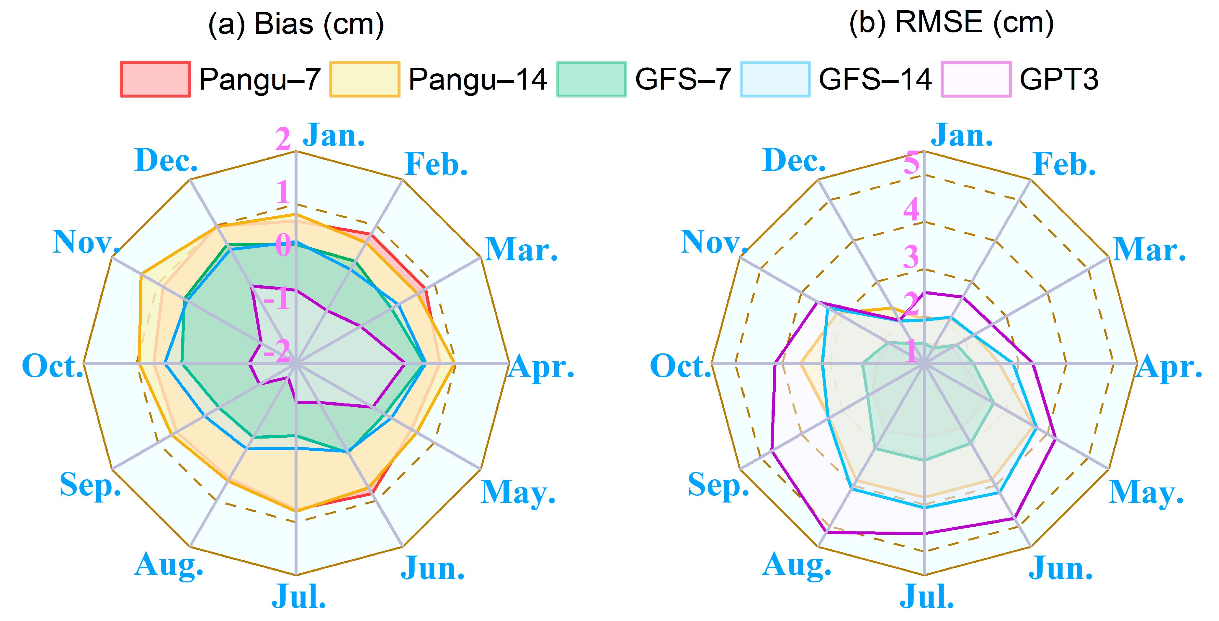 - Xiong, S.; Mei, J.; Xu, X.; Shen, Z.; Huang, L. Methods and evaluation of AI-Based meteorological models for zenith tropospheric delay prediction. Remote Sens. 2024, 16, 4231. [Google Scholar] [CrossRef]