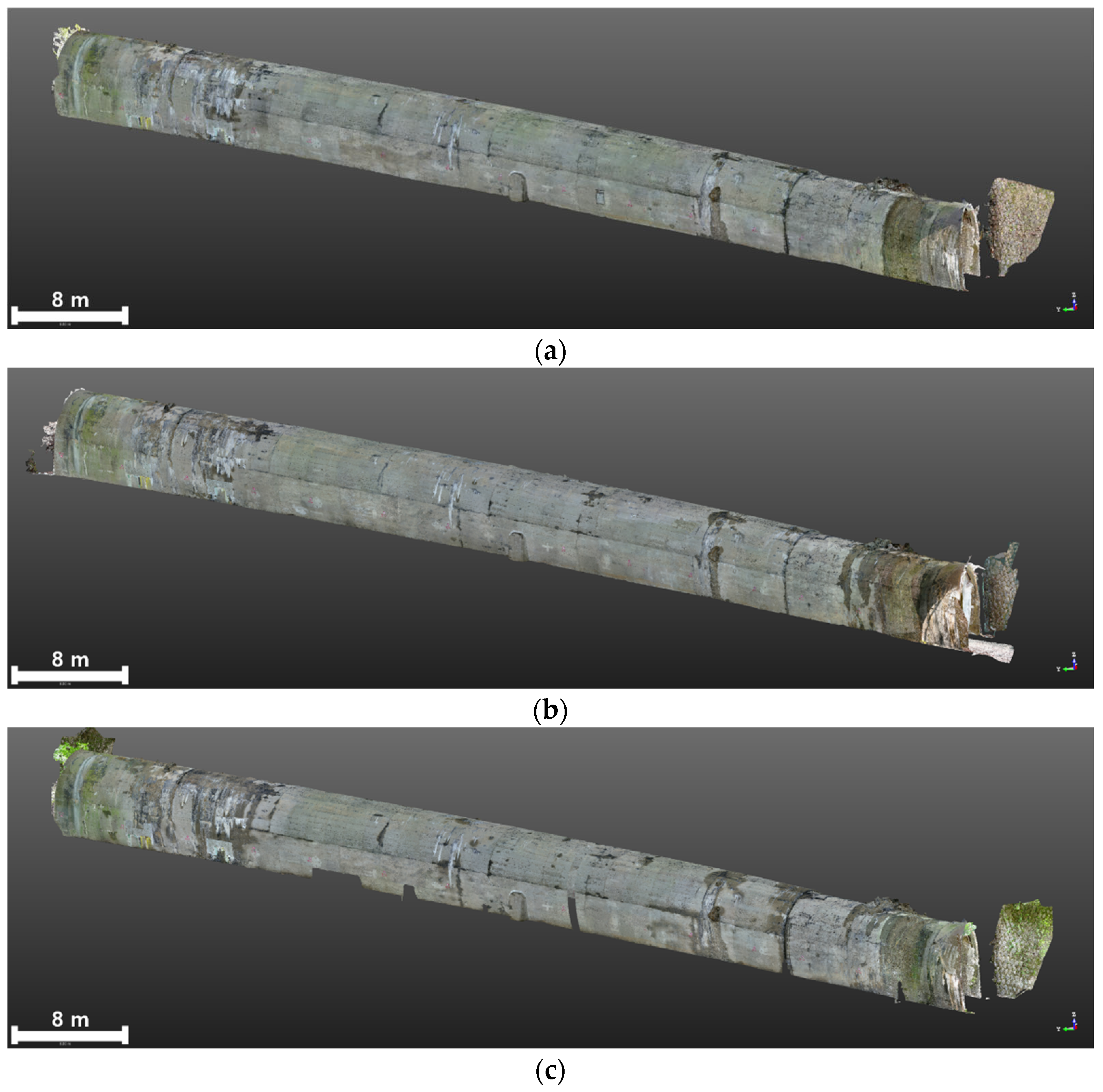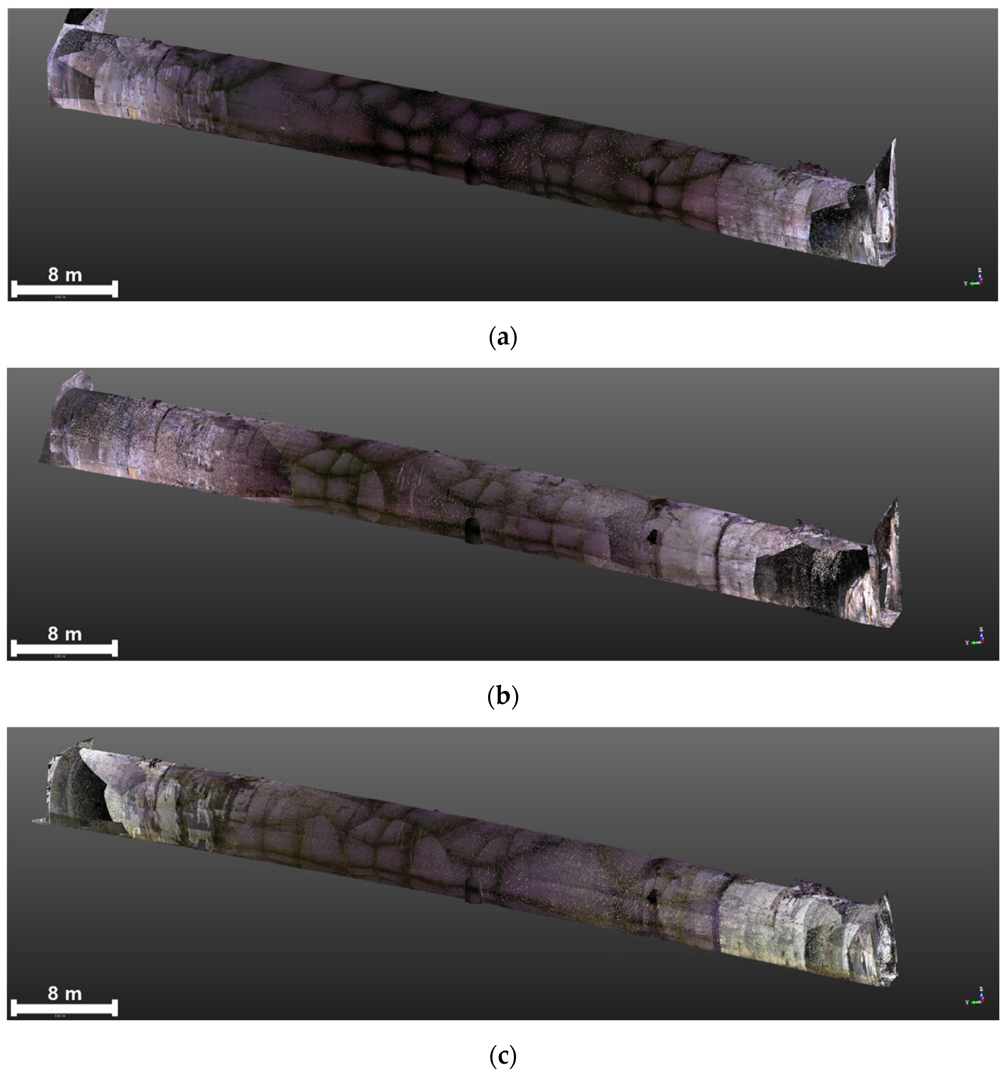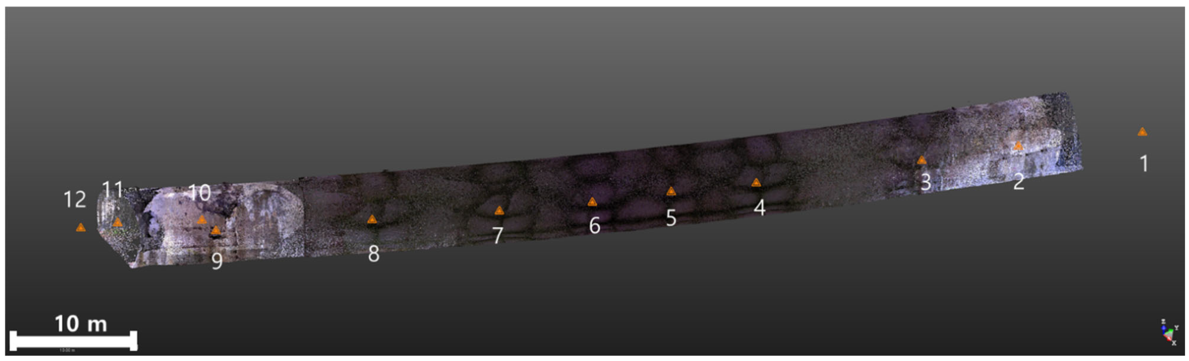 - Wang, Z.; Zhu, Z.; Wu, Y.; Hong, Q.; Jiang, D.; Fu, J.; Xu, S. Automated tunnel point cloud segmentation and extraction method. Appl. Sci. 2025, 15, 2926. [Google Scholar] [CrossRef]