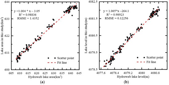 Appendix A.4. Supplementing the Missing Monthly Lake Areas and Levels