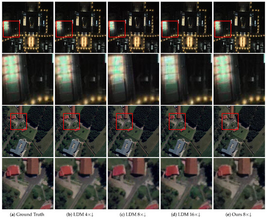 To verify the advantages of the proposed lightweight encoder–decoder in low-light remote sensing enhancement tasks, in Section 5.2, we conducted a systematic comparison between it and the general-purpose encoder–decoder based on the VQ-VAE commonly used in an LDM, covering two dimensions: encoding–decoding effect and model efficiency. Since the use of a general-purpose encoder–decoder leads to a significant decrease in efficiency, where processing a single high-resolution remote sensing image can take several seconds or even dozens of seconds and the performance degradation demonstrated in the experiments is obvious, we did not conduct ablation studies on this part of the content.