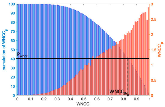 Example of how WNCCth is determined for optimal height selection from the cumulative WNCCp at each WNCC interval starting from 1. Pwncc is the cumulative percentage threshold for selecting WNCCth.