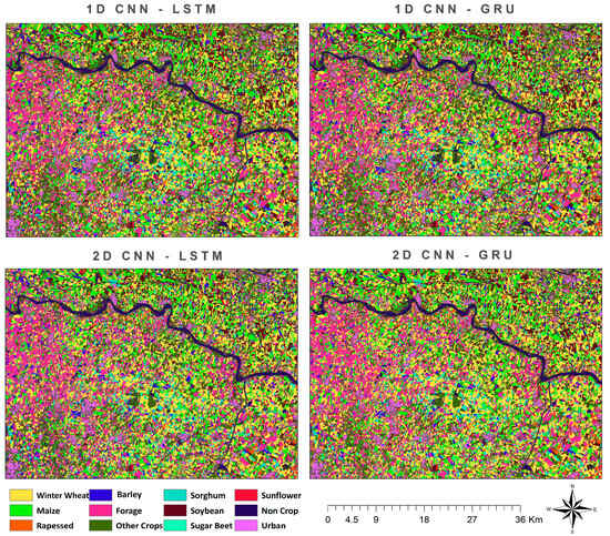 - Sher, M.; Minallah, N.; Frnda, J.; Khan, W. Elevating crop classification performance through CNN-GRU feature fusion. IEEE Access 2024, 12, 141013–141025. [Google Scholar] [CrossRef]