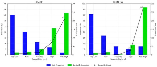 - By integrating InSAR-derived deformation data with historical landslide distributions, the delineation of slope units was optimized to construct a high-quality sample set for comparative experiments. The results demonstrate that the inclusion of deformation factors significantly enhances the model’s discriminative performance, with the AUC value increasing to 0.9798 and the Kappa coefficient rising to 0.8870. Additionally, the landslide containment rate in the Very High susceptibility class improved from 67.21% to 87.01%, a gain which we attribute to the way deformation velocity identifies and differentiates slopes exhibiting recent movement activity from those that are stable (particularly among areas with similar geological-geomorphological characteristics) and synergizes with static factors to better characterize spatial clustering patterns, particularly in response to recent triggering events. These findings confirm the efficacy of multi-source data integration in improving landslide susceptibility assessments in alpine canyon environments, and underscore its advantage in capturing spatially clustered landslide hazards.
