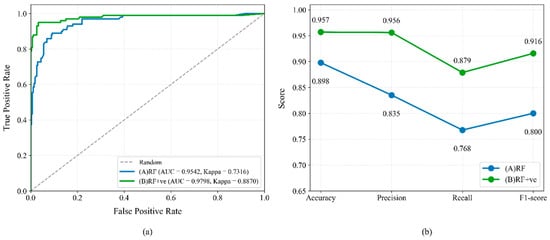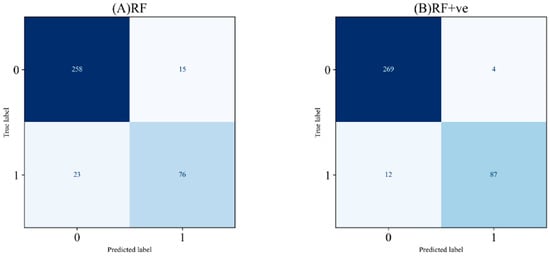 This study establishes two model configurations for comparative analysis: (A) the baseline RF model and (B) the optimized RF+ve model incorporating InSAR-derived deformation factors, aimed at systematically evaluating the enhancement in predictive performance attributable to deformation information. Building on prior findings that Bayesian optimization algorithms offer stable and efficient hyperparameter tuning for machine learning models [65,66], we introduce this approach to automatically adjust key RF hyperparameters, including the number of trees, maximum depth, and node splitting criteria. The optimization target is the mean AUC under 10-fold cross-validation, with iterative search yielding the optimal parameter set to construct a superior classification model.