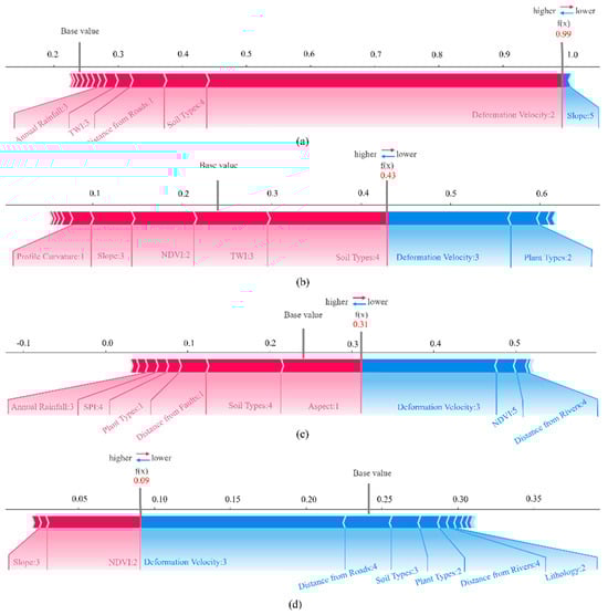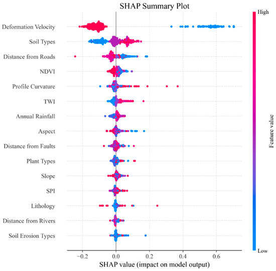 As shown in Figure 8, the top three factors with the highest q-values in this study are Soil Types, Deformation Velocity, and Distance from Roads, all of which also exhibit statistically significant p-values (p < 0.05). This suggests that these factors not only exhibit the strongest statistical association with landslide susceptibility but that these associations are highly unlikely to be due to chance. In contrast, the three lowest-ranking factors (Lithology, Land Cover, and Plan Curvature) demonstrate limited individual explanatory power; notably, Land cover and Plan Curvature also show non-significant p-values, further confirming their marginal role in the model.