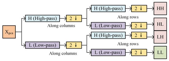 As illustrated in Figure 3, for each spectral channel, (where ), the DWT decomposes it to four sub-bands as follows:
