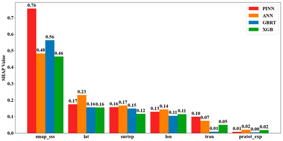 The PINN model utilized the same training hyperparameters as the ANN model to assess the effectiveness of physical loss, thereby ensuring that the optimization process could achieve local model optimality and enhance the reliability of the results. The parameter in the PINN model is specifically designed to account for various polarization settings based on the correlation between brightness temperature and sea surface salinity (SSS). It is set to be proportional to the size of the brightness temperature values across different polarizations. This simplification ensures that the model effectively captures the relationship between these parameters, enhancing its ability to accurately predict outputs based on varying polarization conditions.