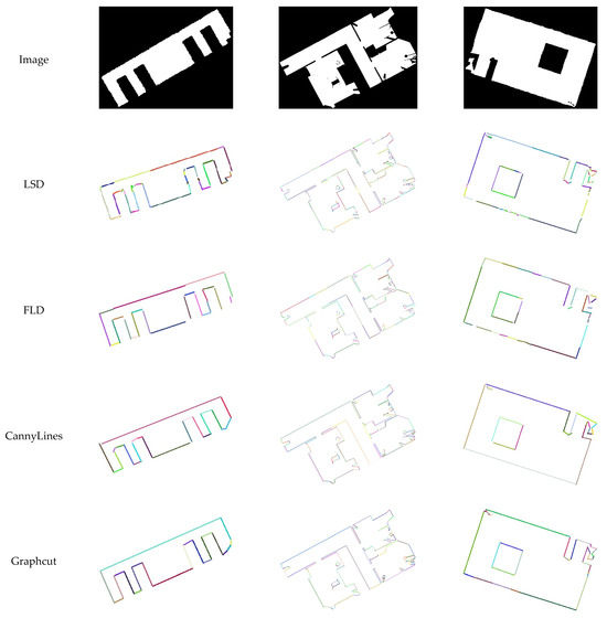 However, line fitting processes inevitably suffer from direction deviations, discontinuities, and missing intersections. To overcome these limitations, the Modified Random Step Clustering (M-RSC) method [57] refines incomplete line segments by classifying feature points as curve or linear types and enforcing geometric constraints. The split-and-merge method [58] generates closed contours with low complexity using semantic probability maps and image gradients, but its performance strongly depends on the accuracy of the input semantic labels.