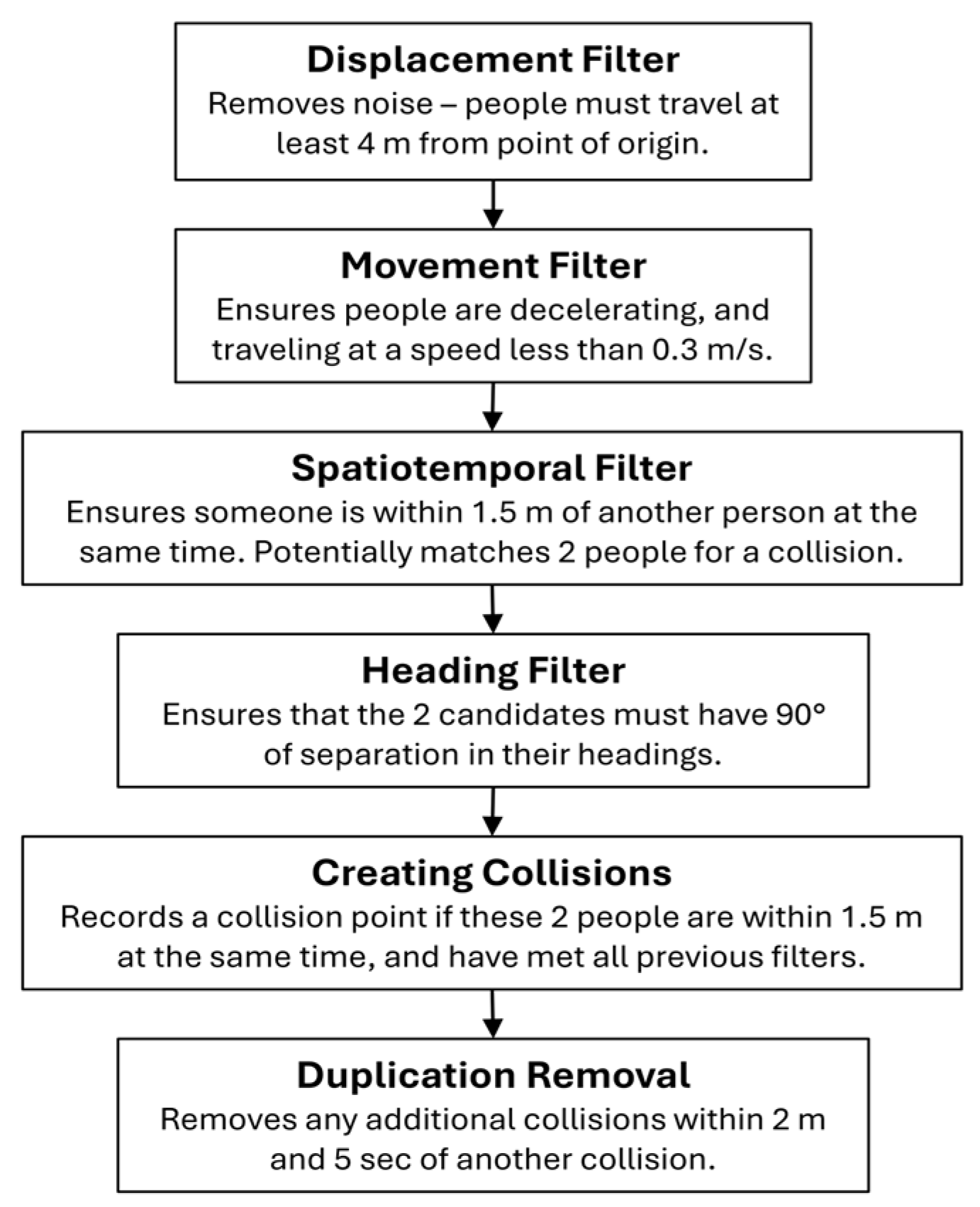 APA StyleFlack, A. H., Pingel, T. J., Baird, T. D., Karki, S., & Abaid, N. (2025). Lidar-Based Detection and Analysis of Serendipitous Collisions in Shared Indoor Spaces. Remote Sensing, 17(18), 3236. https://doi.org/10.3390/rs17183236