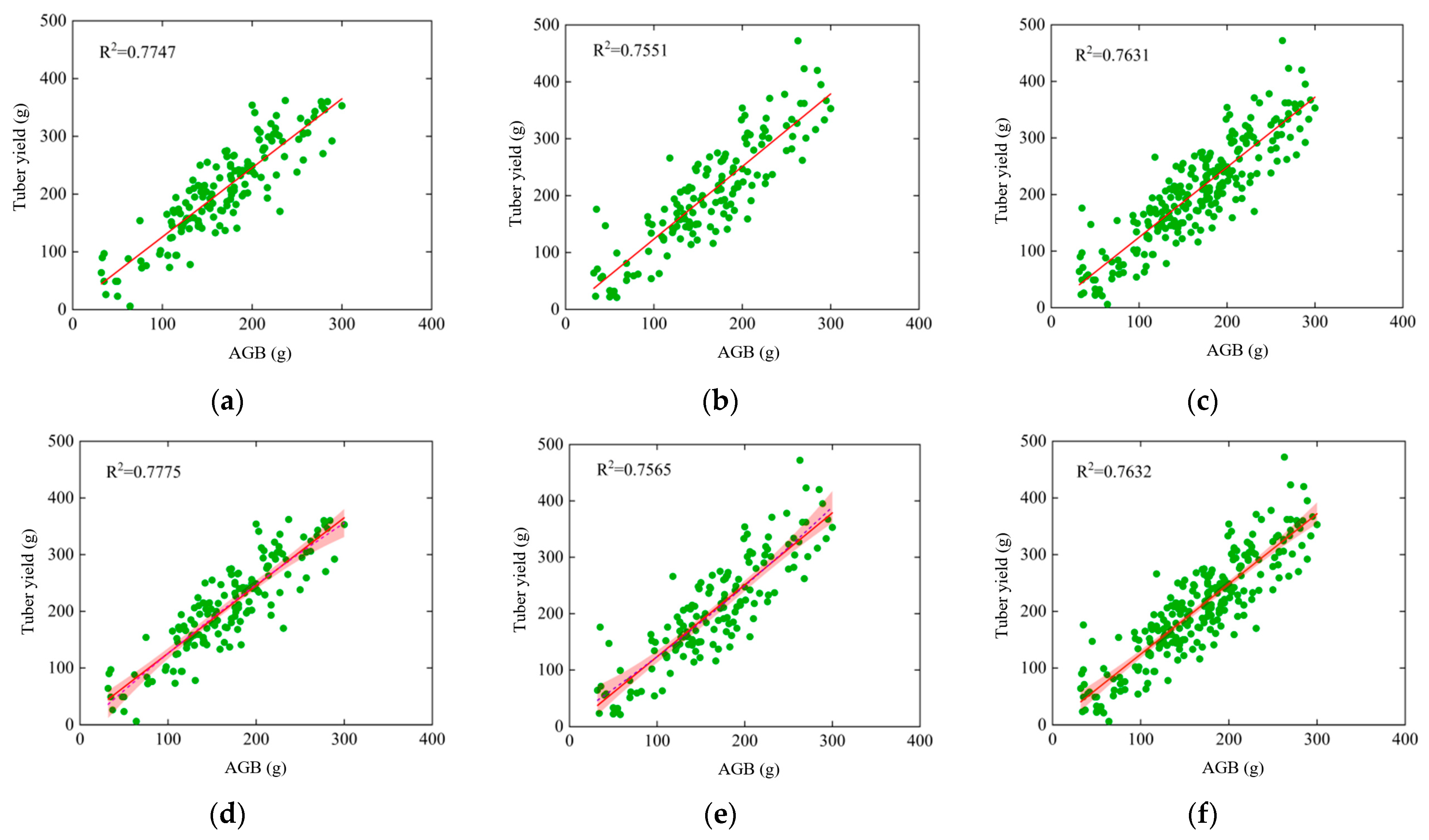 Furthermore, measured AGB was directly used to predict tuber yield, and the results showed a slightly higher accuracy (R