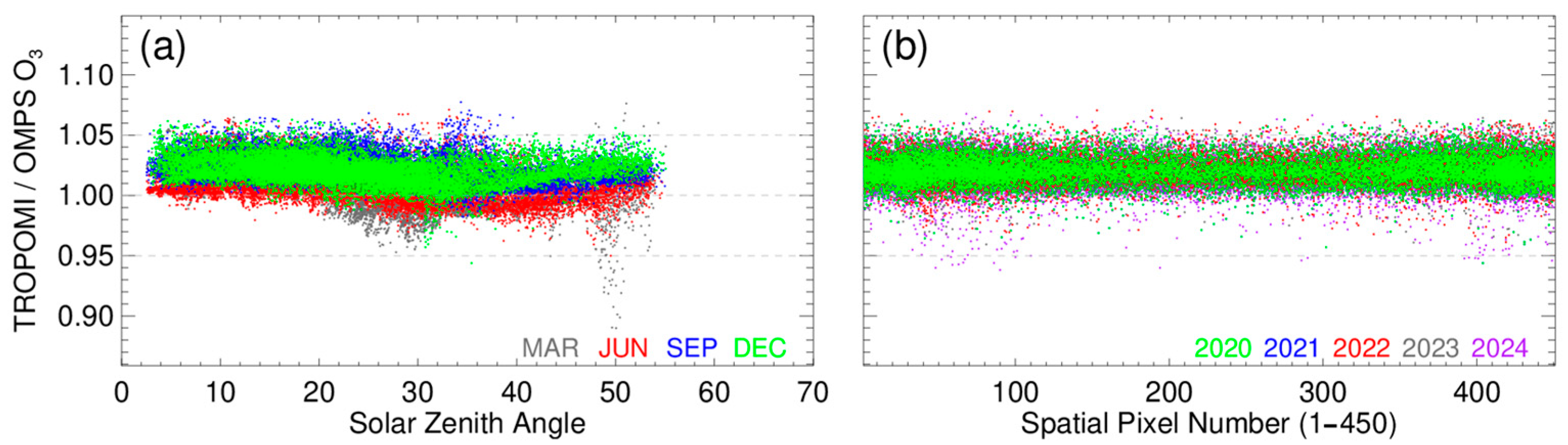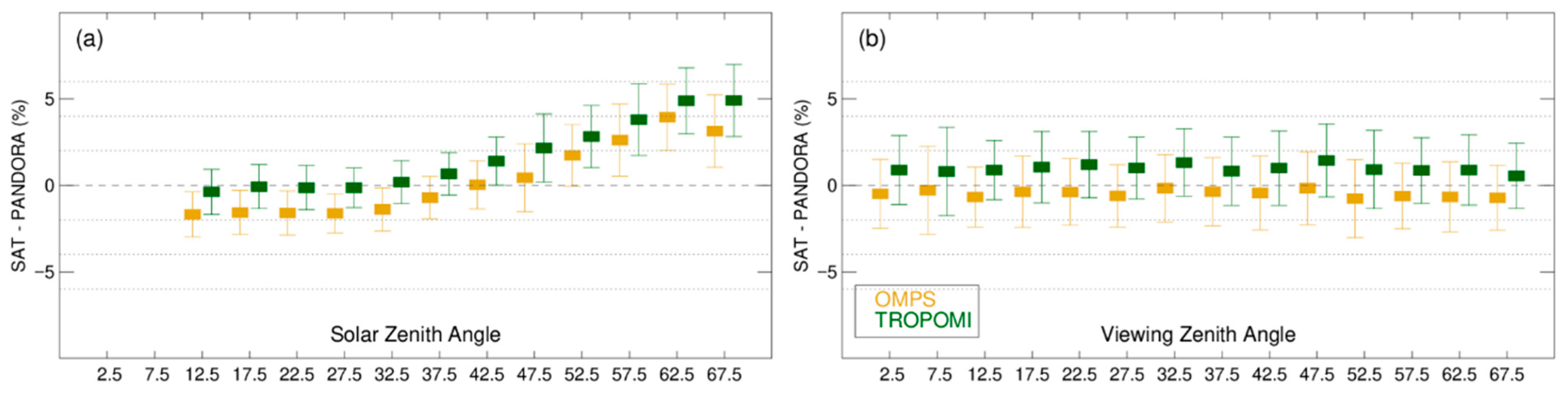 3.2. Dependence of GEMS Ozone Products on Viewing Geometry