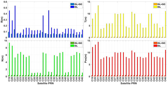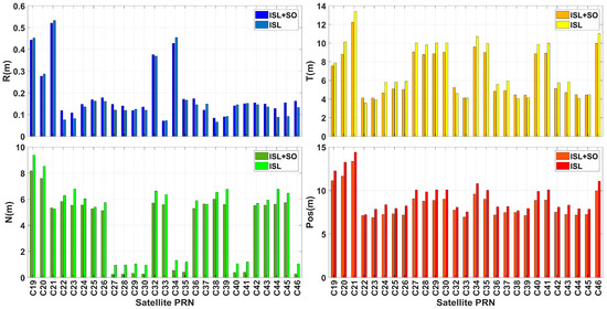Orbit determination accuracy statistics of BeiDou satellites supported by inter-satellite link data (ISL) and inter-satellite link data/space-based orientation data (ISL + SO) (inertial reference system).