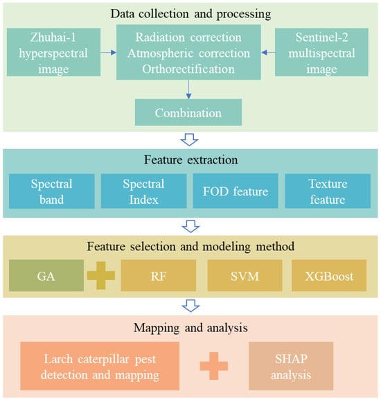 Wang, M.; Cai, D.; Wang, F.; Zhao, J.; Ding, Q.; Zhou, Y.; Cai, J.; Liu, L.; Xu, X. Detection of Larch Caterpillar Infestation in Typical Forest Areas of Changbai Mountain, China, Based on Integrated Satellite Hyperspectral and Multispectral Data. Remote Sens. 2025, 17, 3274. https://doi.org/10.3390/rs17193274