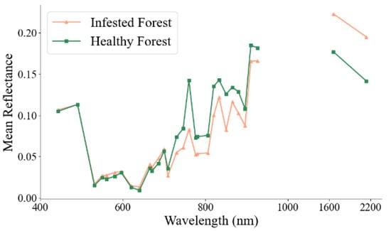 - Xu, Z.-H.; Huang, X.-Y.; Lin, L.; Wang, Q.-F.; Liu, J.; Chen, C.-C.; Yu, K.-Y.; Zhou, H.-K.; Zhang, H.-F. Dendrolimus Punctatus Walker Damage Detection Based on Fisher Discriminant Analysis and Random Forest. Spectrosc. Spect Anal. 2018, 38, 2888–2896. [Google Scholar]