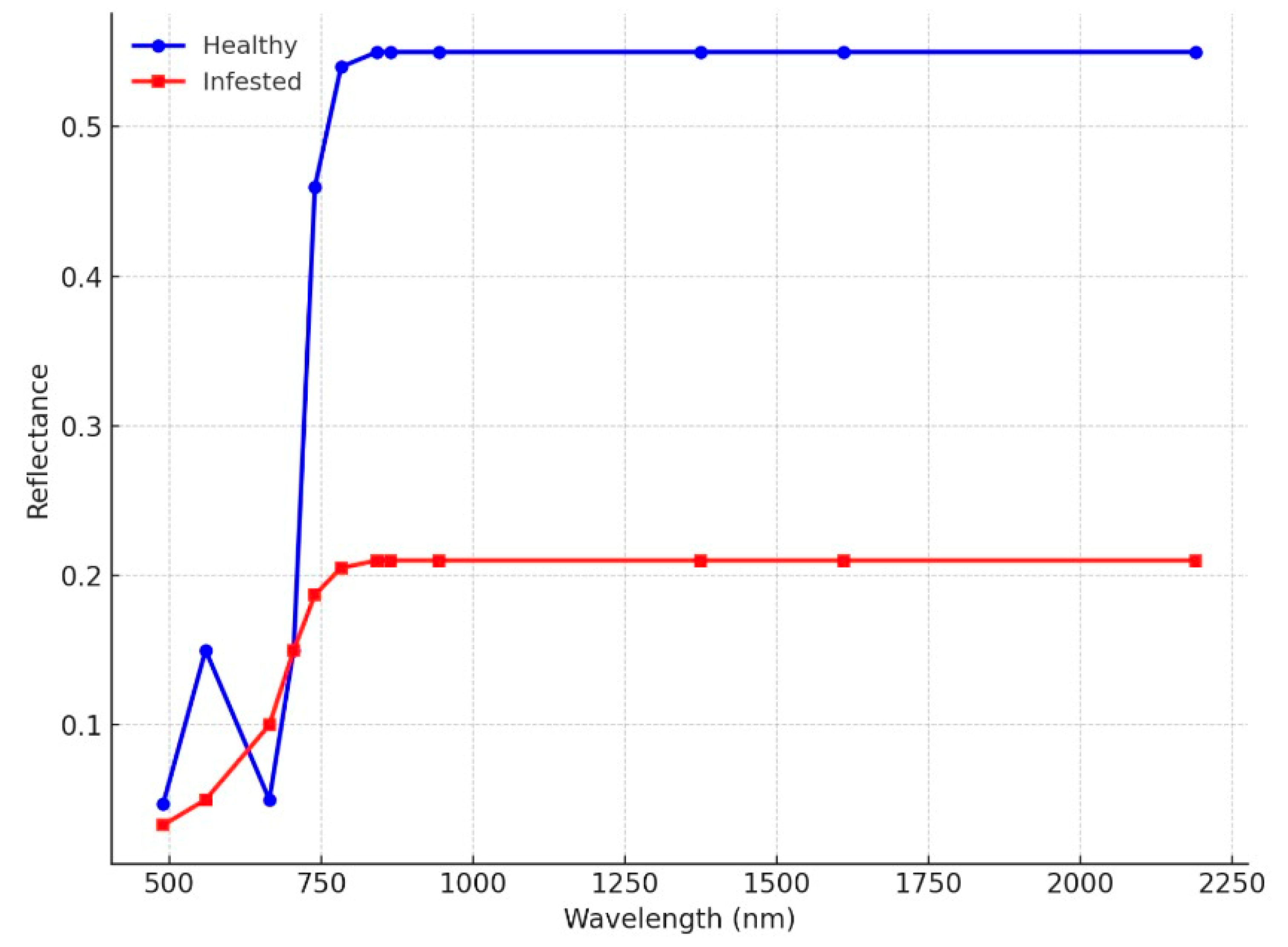 EVI | Blade structure | Detects microstructural changes in canopy caused by hyphal penetration and cell destruction during early infection | |