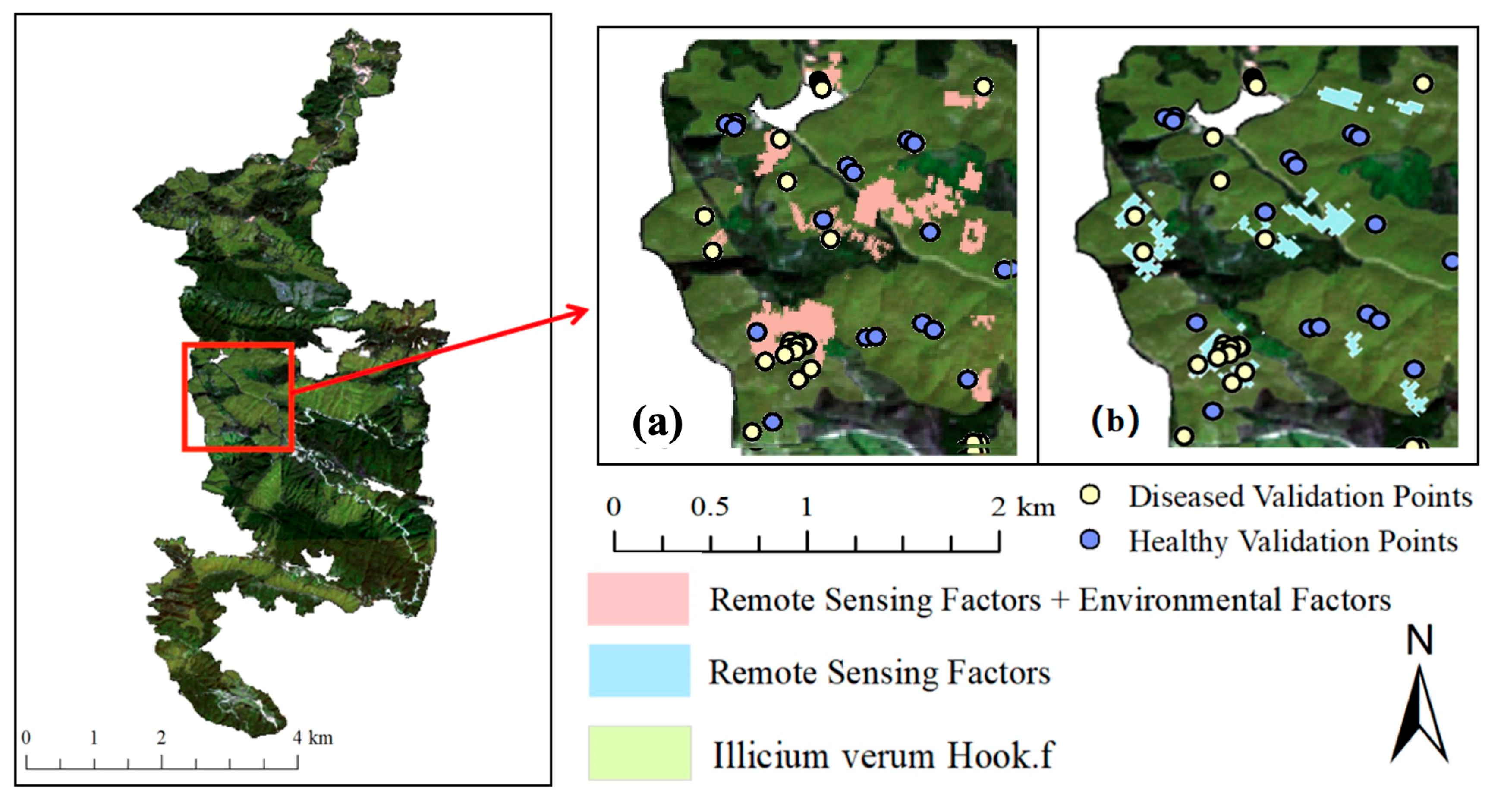 - Li, M.; Liu, M.; Wang, X.; Liu, X.; Wu, L.; Li, J. Remote Sensing Recognition Model of Illicium verum Forest Pests and Diseases. Sci. Silvae Sin. 2024, 60, 128–138. [Google Scholar]