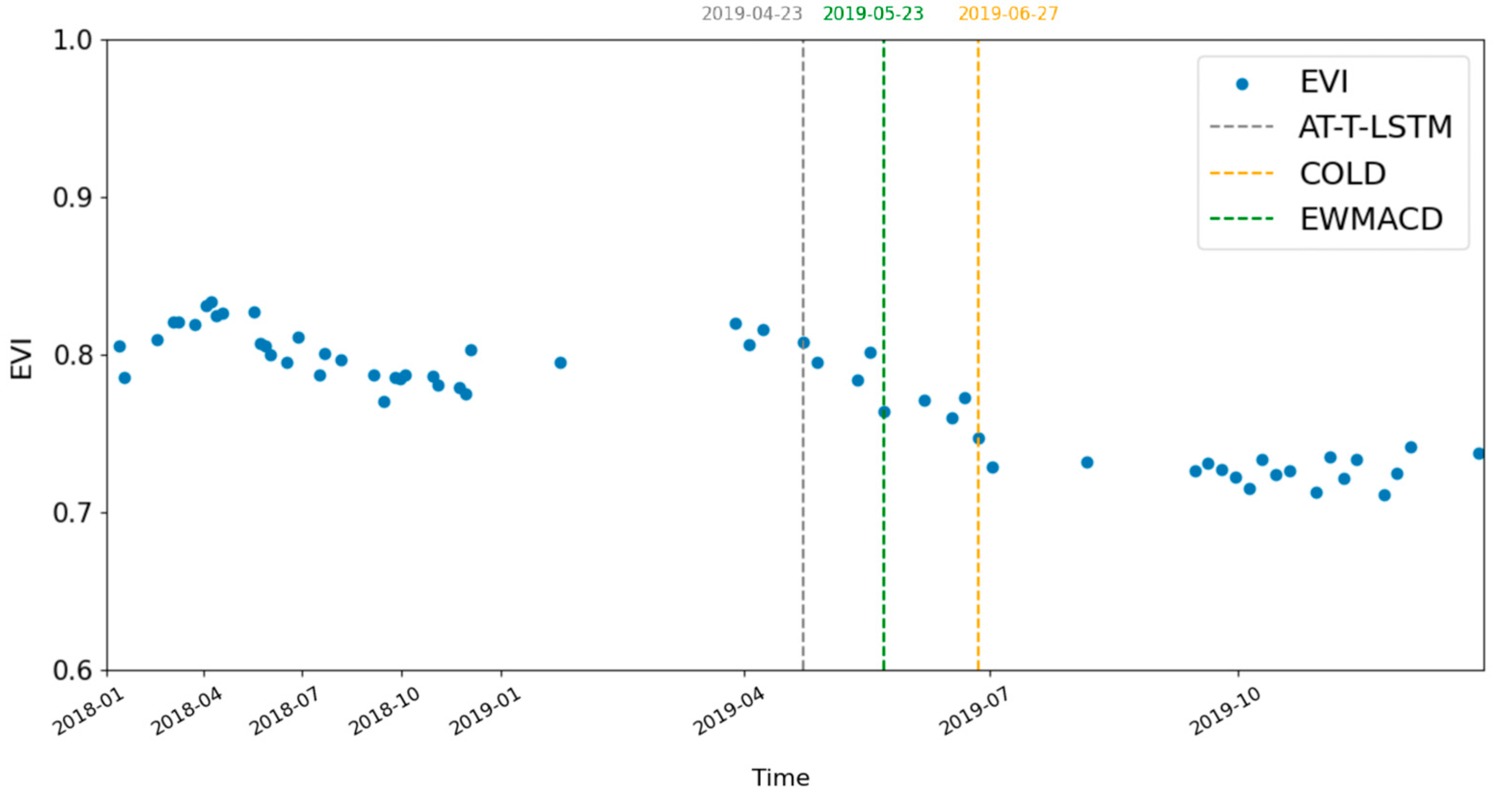 4.3.3. Comparison of Temporal Accuracy Between At-T-LSTM Model and Time-Series Change Detection Algorithms