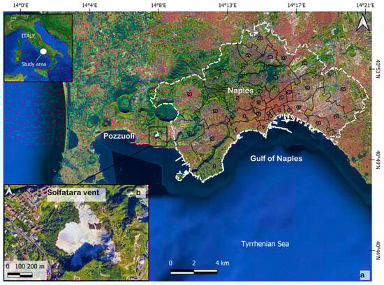 - Caputo, T.; Bellucci Sessa, E.; Silvestri, M.; Buongiorno, M.F.; Musacchio, M.; Sansivero, F.; Vilardo, G. Surface temperature multiscale monitoring by thermal infrared satellite and ground images at Campi Flegrei volcanic area (Italy). Remote Sens. 2019, 11, 1007. [Google Scholar] [CrossRef]