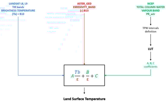 - Ermida, S.L.; Soares, P.; Mantas, V.; Gottsche, F.; Trigo, I. Google Earth Engine Open-Source Code for Land Surface Temperature Estimation from the Landsat Series. Remote Sens. 2020, 12, 1471. [Google Scholar] [CrossRef]