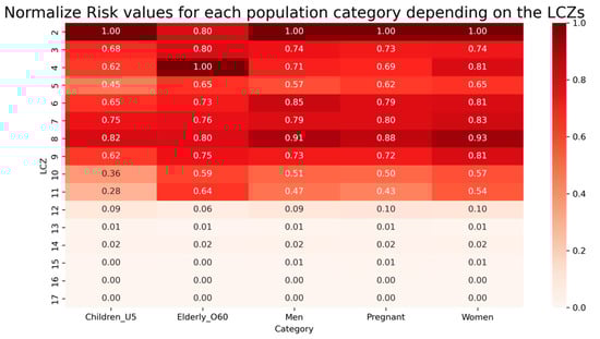 3.2. Risk Indices with Reference to Each Population Category Distribution