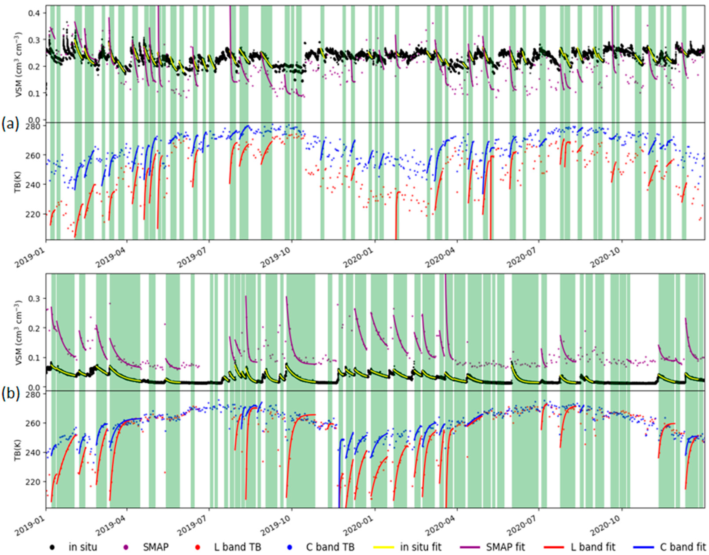 Jiang, H.; Lv, S.; Hu, Y.; Wen, J. Contrasting Drydown Time Scales: SMAP L-Band vs. AMSR2 C-Band Brightness Temperatures Against Ground Observations and SMAP Products. Remote Sens. 2025, 17, 3307. https://doi.org/10.3390/rs17193307