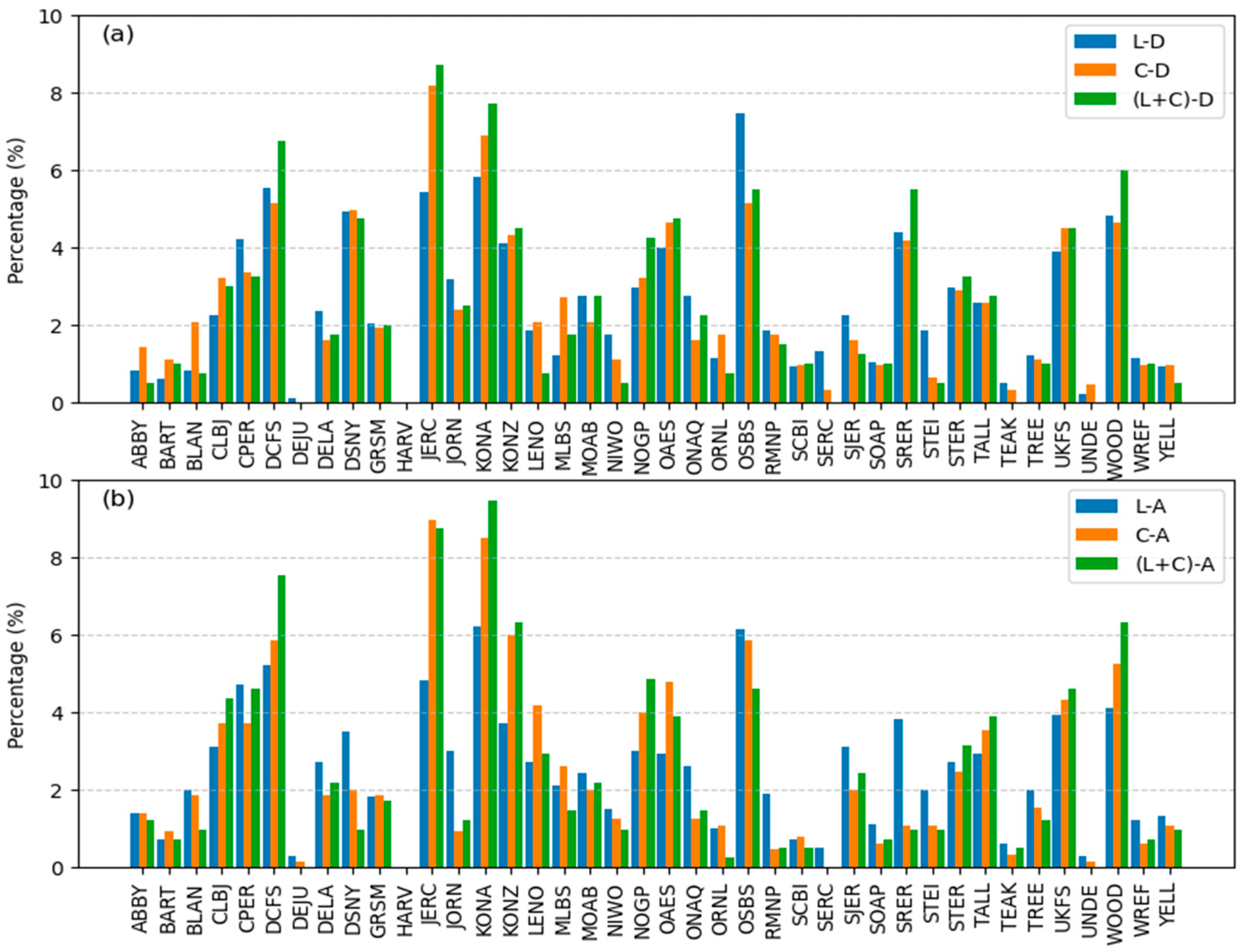 - Ayres, E.; Colliander, A.; Cosh, M.H.; Roberti, J.A.; Simkin, S.; Genazzio, M.A. Validation of SMAP Soil Moisture at Terrestrial National Ecological Observatory Network (NEON) Sites Show Potential for Soil Moisture Retrieval in Forested Areas. IEEE J. Sel. Top. Appl. Earth Obs. Remote Sens. 2021, 14, 10903–10918. [Google Scholar] [CrossRef]