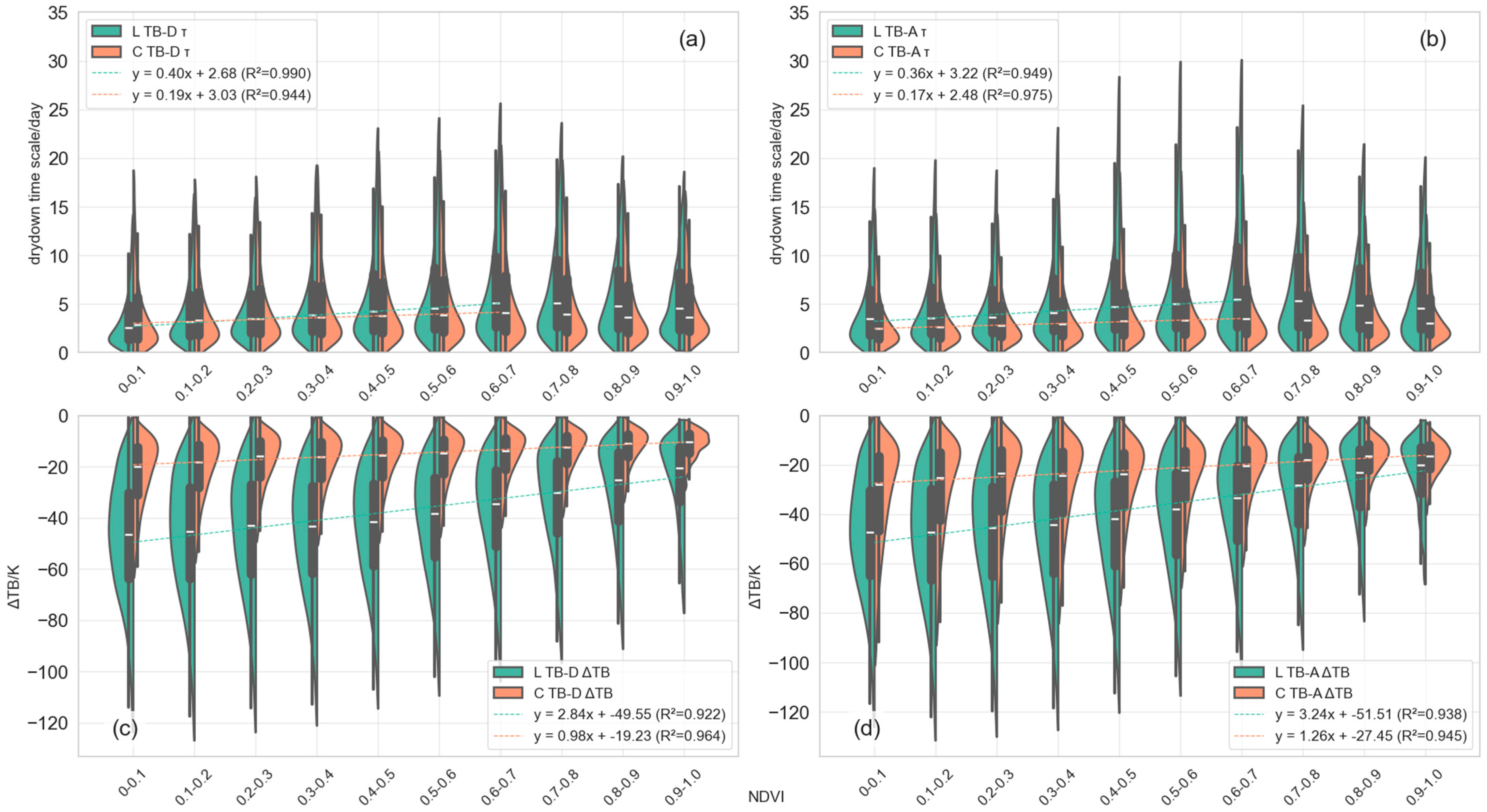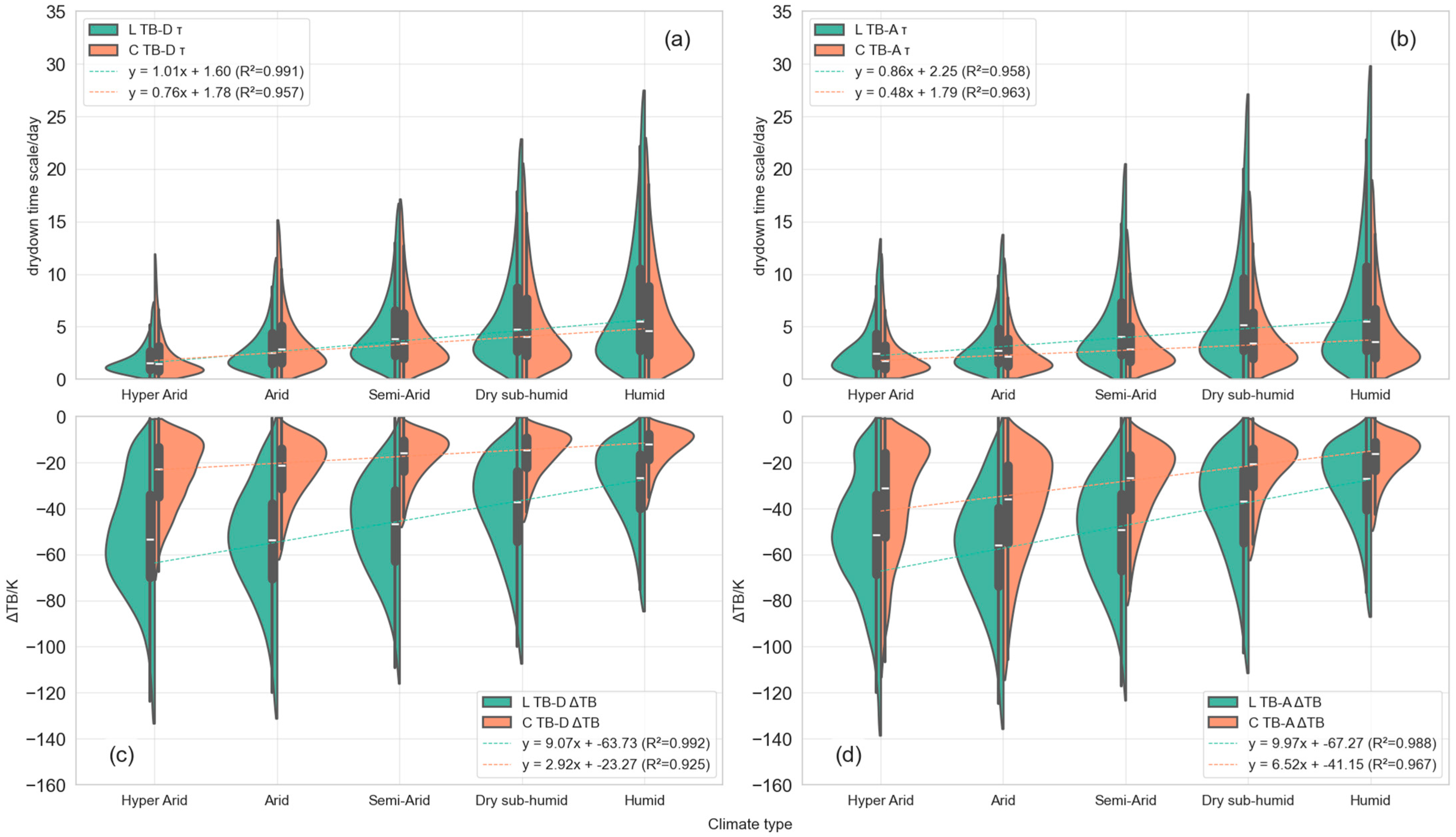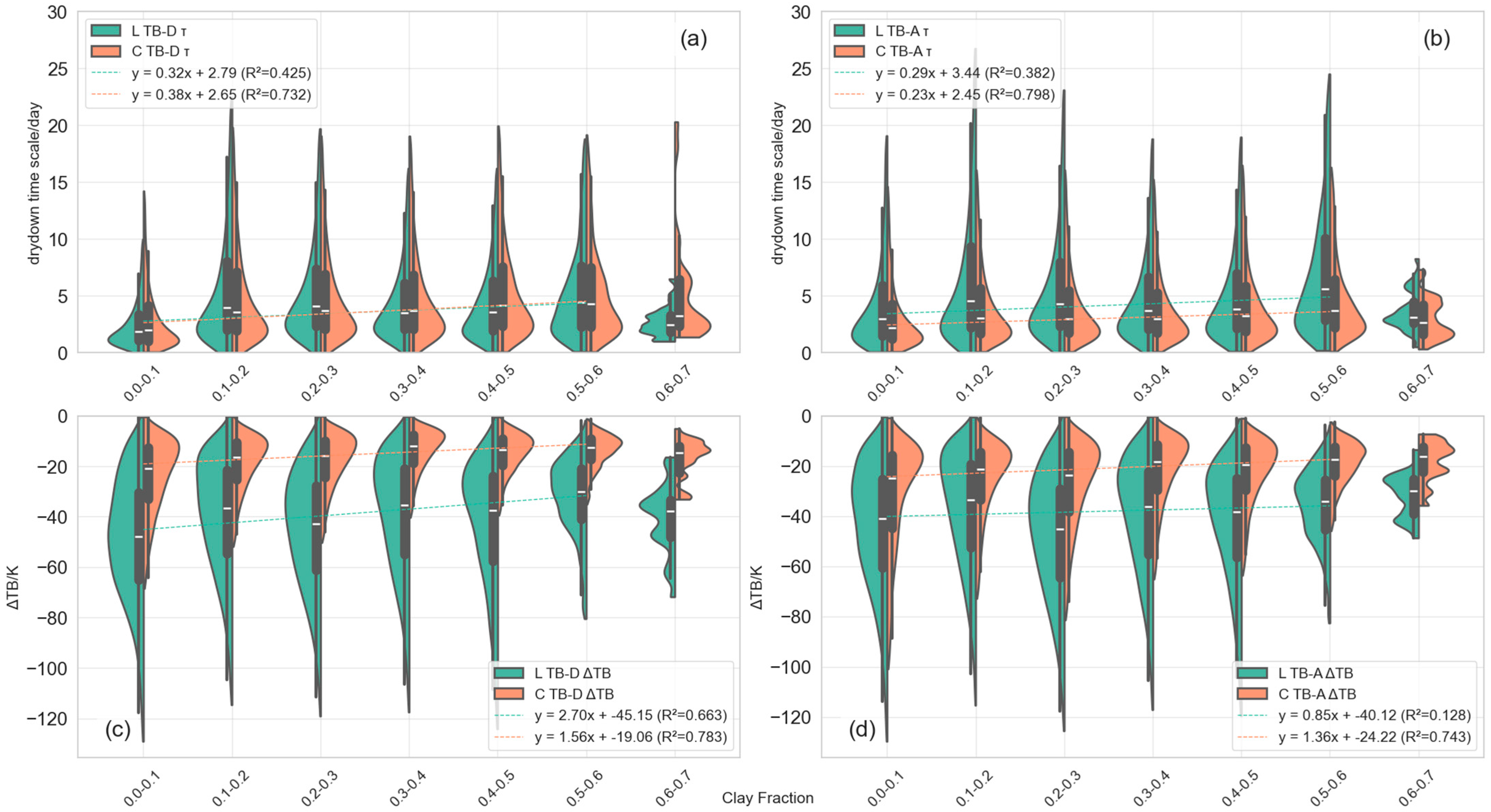 - This study innovatively employs multi-frequency TB (instead of traditional SM products) to analyze τ, revealing frequency-dependent soil drying characteristics and differences in signal transmission.