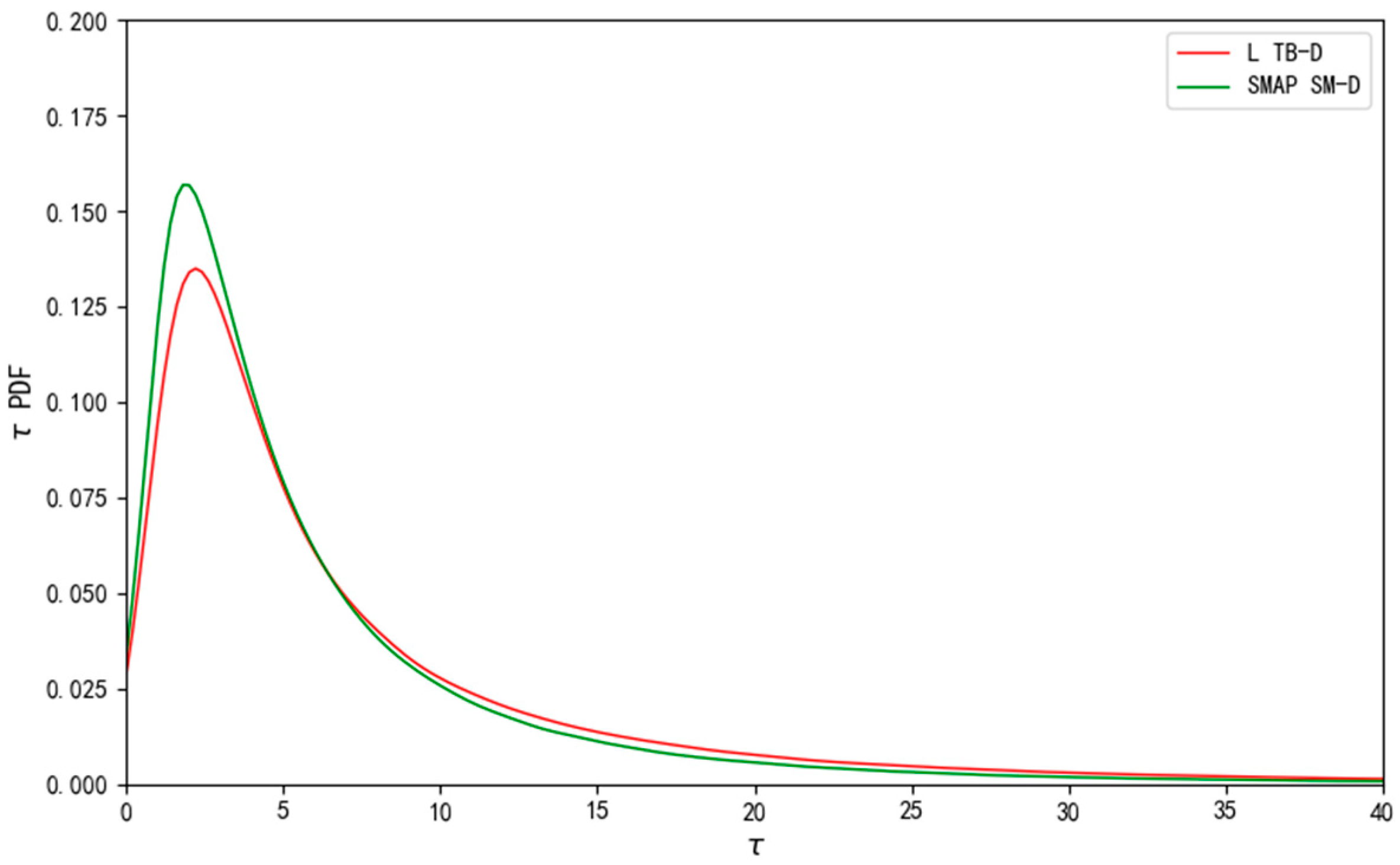 - O’Neill, P.; Bindlish, R.; Chan, S.; Chaubell, J.; Njoku, E.; Jackson, T. Soil Moisture Active Passive (SMAP) Algorithm Theoretical Basis Document Level 2 & 3 Soil Moisture (Passive) Data Products, Revision F; JPL D-66480; Jet Propulsion Laboratory: Pasadena, CA, USA, 2020; pp. 51–63. [Google Scholar]