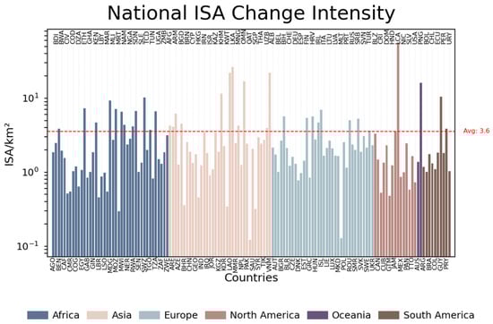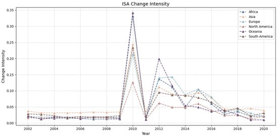 Global ISA change intensity in different continents.
