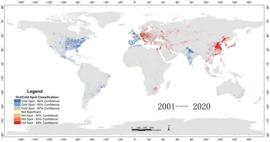 Hotspot analysis of ISA change intensity from 2001 to 2020.