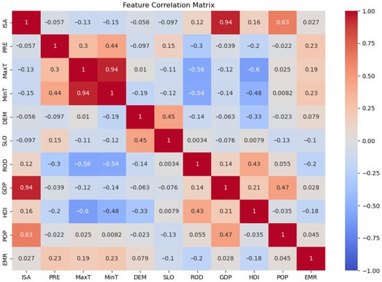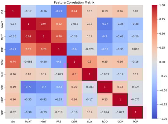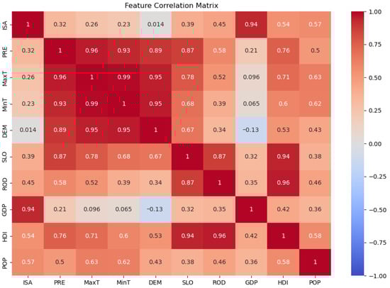The heatmap of correlations between ISA and driving factors (country level).