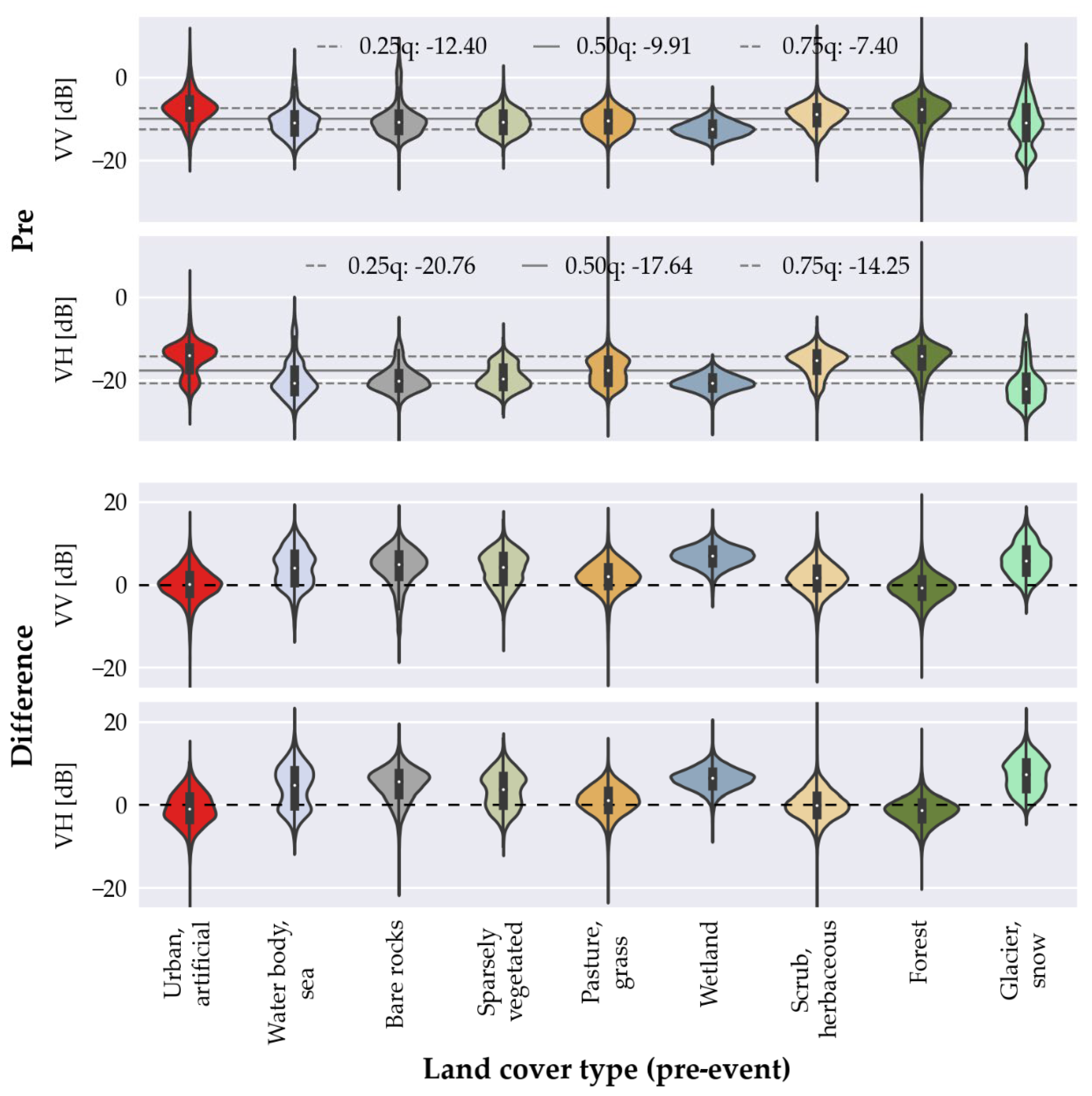 3.1.4. Violin Plots Showing Values of Pre- and Post-Event Land Cover
