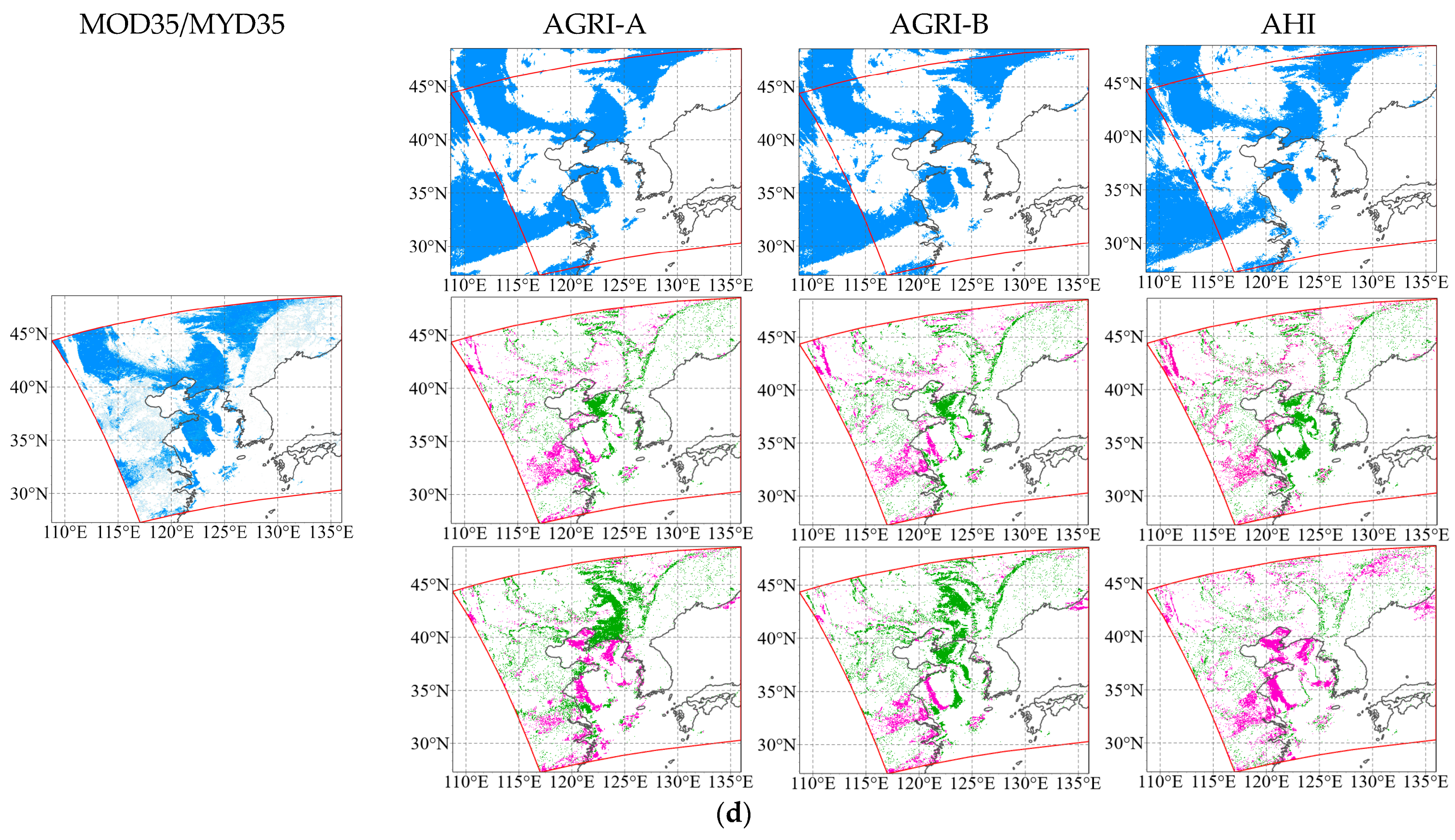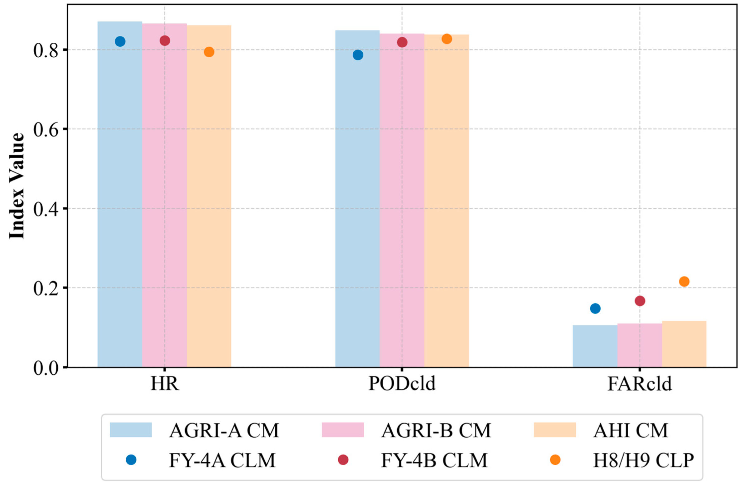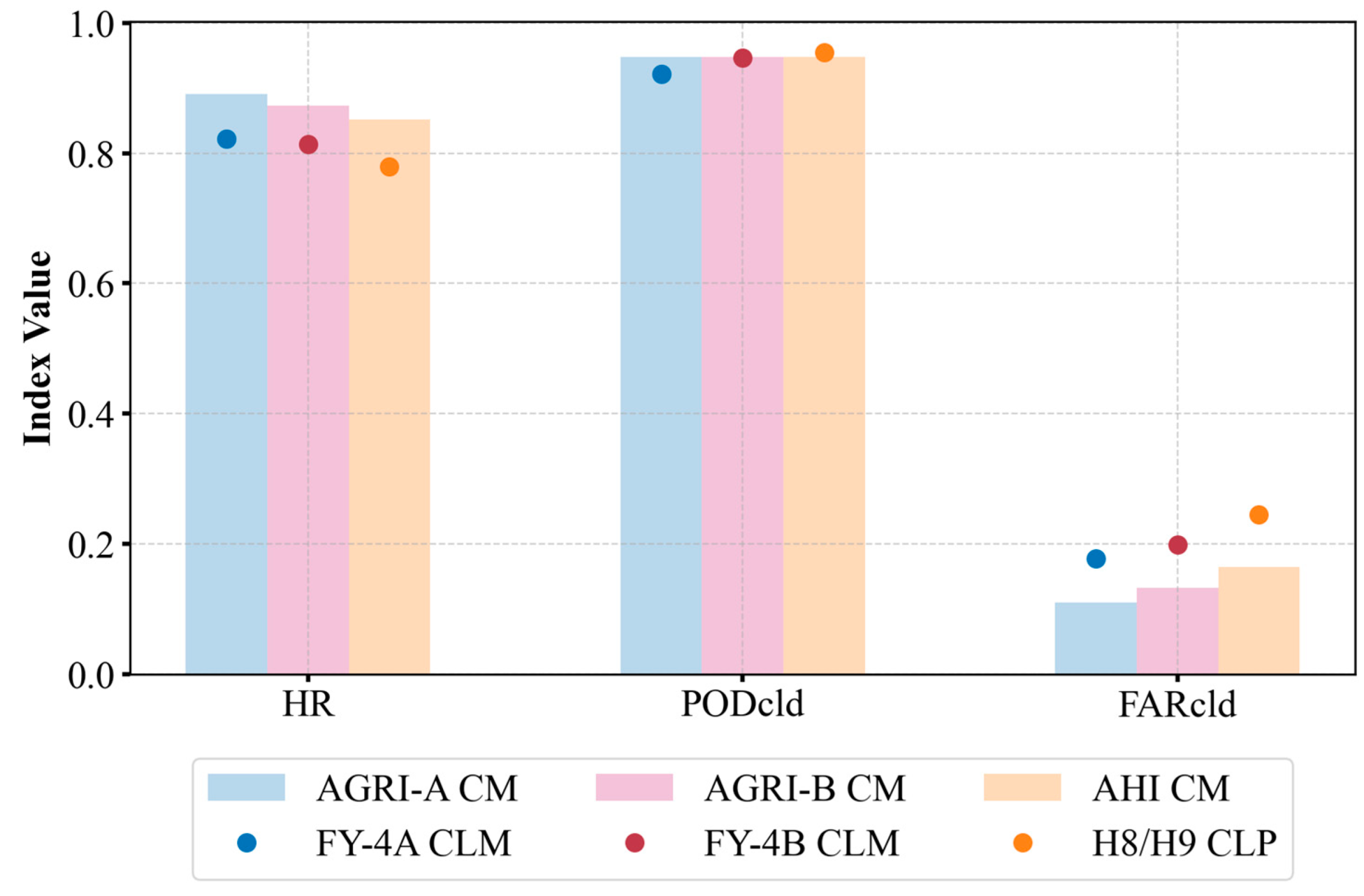 - A consistency analysis of cloud mask detection across FY-4A/AGRI, FY-4B/AGRI and Himawari-8/9 AHI.