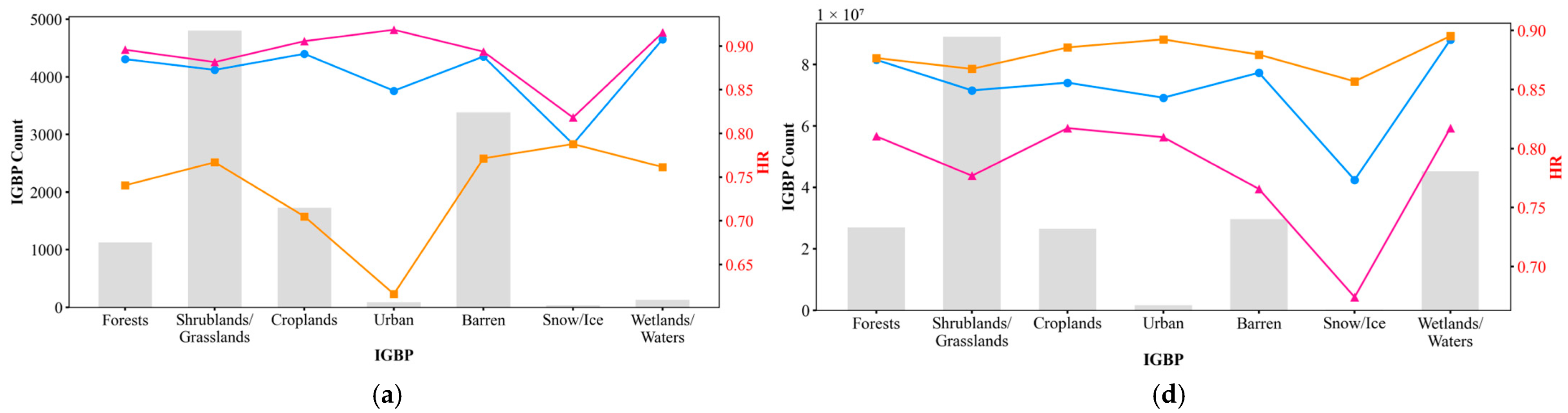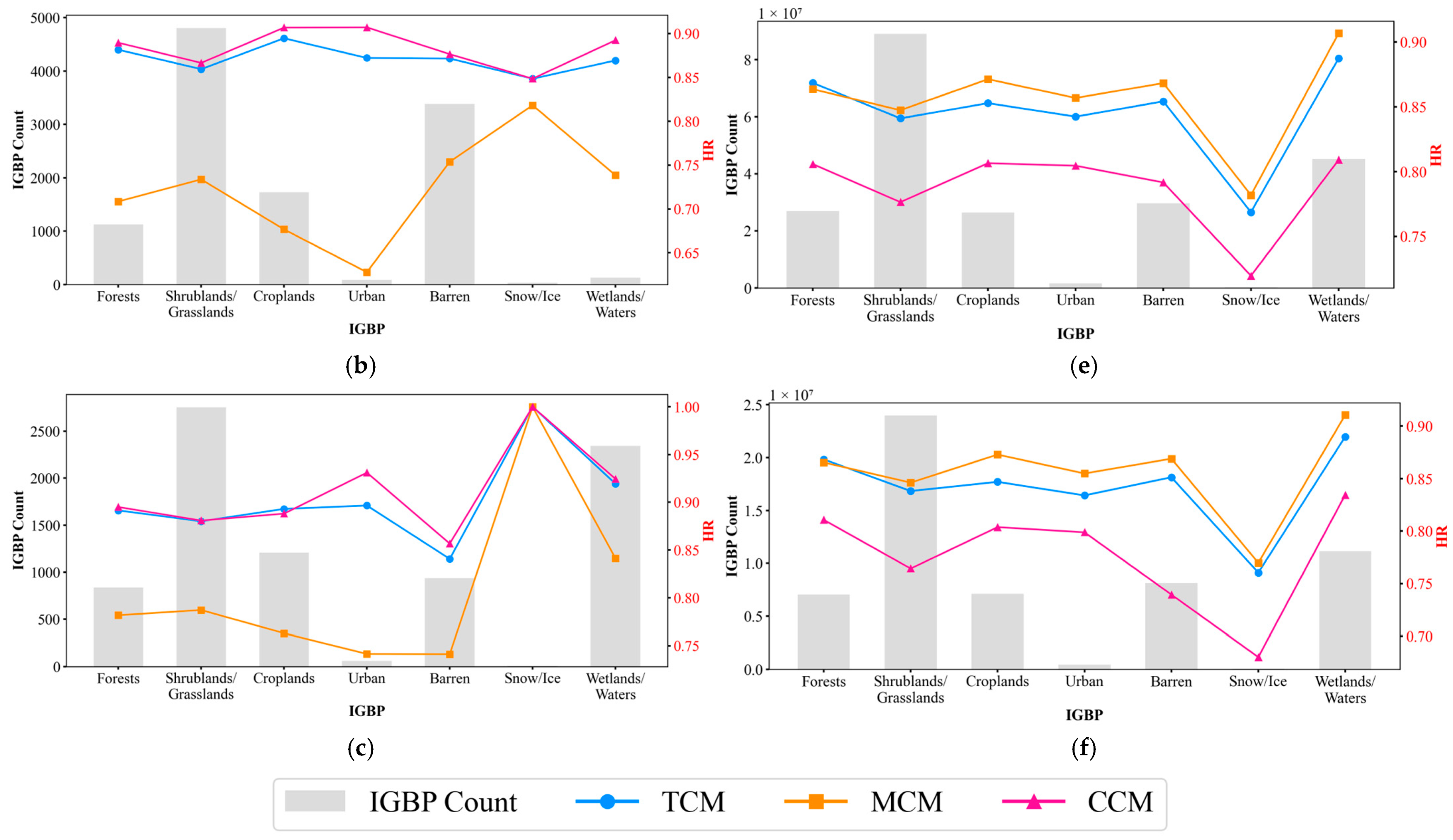 5.1. Performance of TCM, MCM, and CCM by IGBP Class