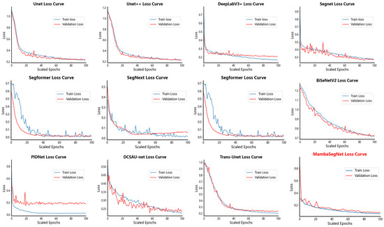 Upon closely analyzing the loss curves from the Dior_ship and LEVIR_ship datasets, MambaSegNet emerges as a model of remarkable efficiency and stability, distinguishing itself from other architectures in terms of both rapid and smooth convergence. Throughout the training process, MambaSegNet exhibits a consistently steady decrease in training loss, with its validation loss also following a similarly smooth and continuous downward trajectory, demonstrating its inherent robustness. In stark contrast, while other models show relatively rapid loss reduction during the early epochs, they often suffer from significant fluctuations, particularly in the validation loss, which is indicative of overfitting or the model’s failure to generalize well beyond the training set. MambaSegNet, however, maintains a harmonious alignment between training and validation losses, with its validation curve remaining consistently stable in the later epochs, further emphasizing the model’s superior generalization capabilities. This pattern holds true across both the Dior_ship and LEVIR_ship datasets, confirming that MambaSegNet is highly adept at handling a diverse range of data distributions, reinforcing its credibility and versatility in real-world applications. The model’s ability to converge efficiently while mitigating overfitting signals its potential to reliably perform across a wide array of tasks that demand both high stability and precision.