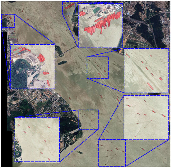 Despite the model’s impressive performance on theoretical datasets, the results obtained from real-world imagery were equally compelling, showcasing its ability to deliver satisfactory segmentation even when confronted with the challenges inherent in remote sensing imagery. Figure 9 presents the processed result, providing a clear depiction of the model’s performance in a complex maritime environment.