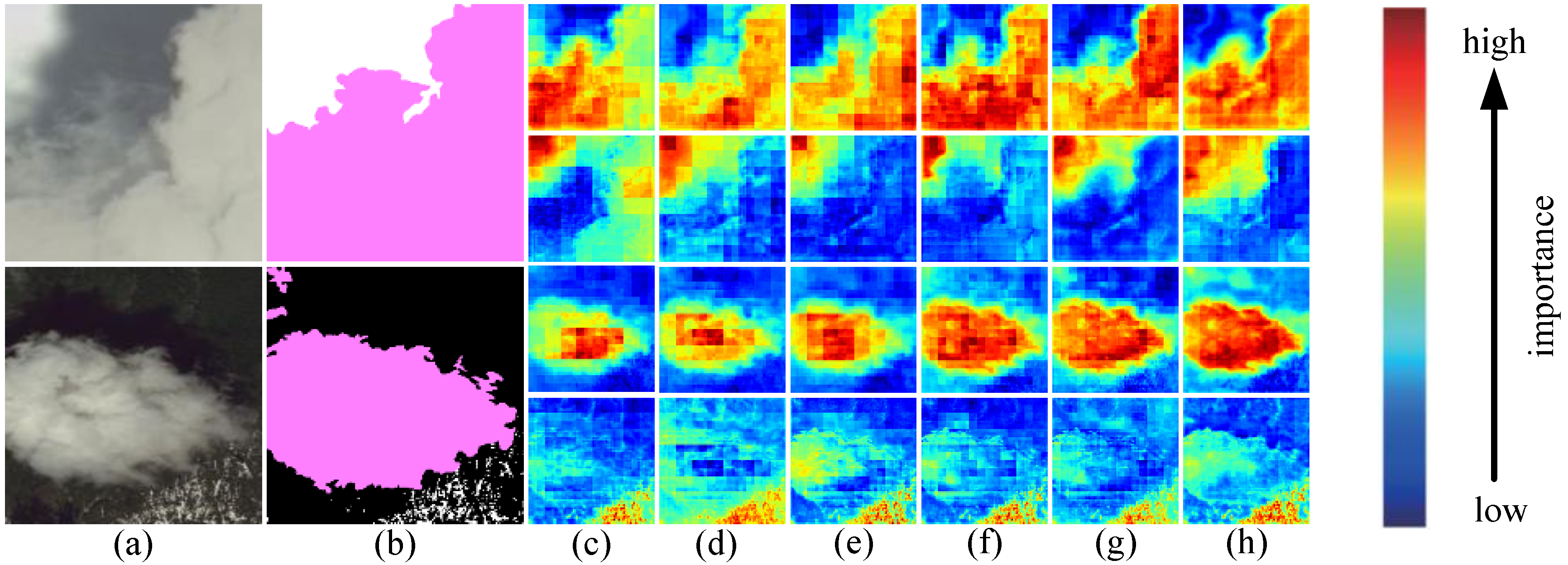 Figure 6g highlights that SPAM enables the network to focus better on the cloud-snow junction, refining edge details and improving segmentation accuracy.