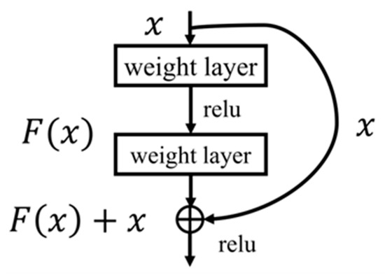 ResNet [38] is a classical CNN architecture for semantic segmentation, with its key component being the residual unit designed to address the challenges faced when training very deep networks. This unit was introduced to alleviate the gradient vanishing problem, enabling the successful training of deep networks with hundreds or even thousands of layers. It also features a mechanism for skip-connecting. The structure of the residual unit is shown in Figure 5, and the output of the residual unit is computed as: