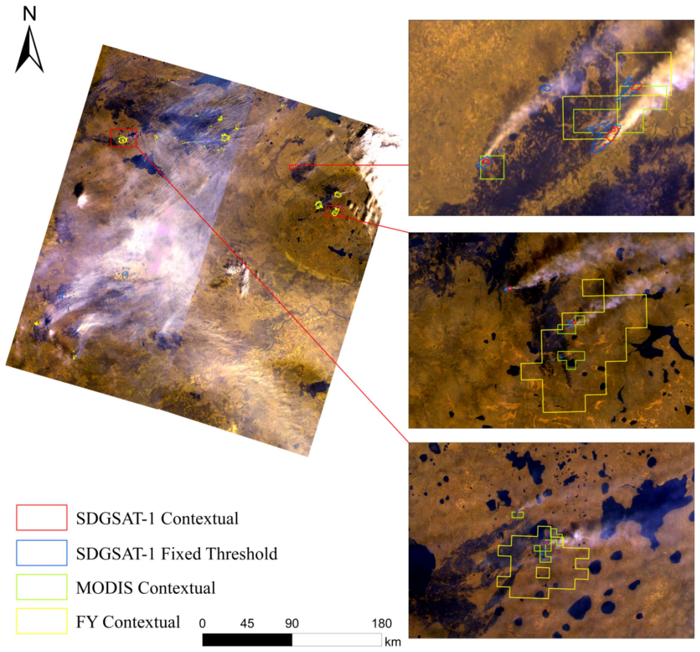 - The accuracy of SDGSAT-1 in correctly identifying fire points using the fixed threshold method is 91.10%.
