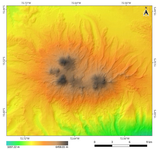 One of the main opportunities to address these challenges is deriving the glacier’s geodetic mass balance from satellite and aerial imagery [15], because it allows for high-precision, long-term monitoring of glacier changes, providing information on the availability of solid water reserves and the evolution of these sensitive indicators of global climate change. This work aims to apply these techniques in the glacial system of the Nevado Coropuna volcanic complex. Its main objectives are as follows: