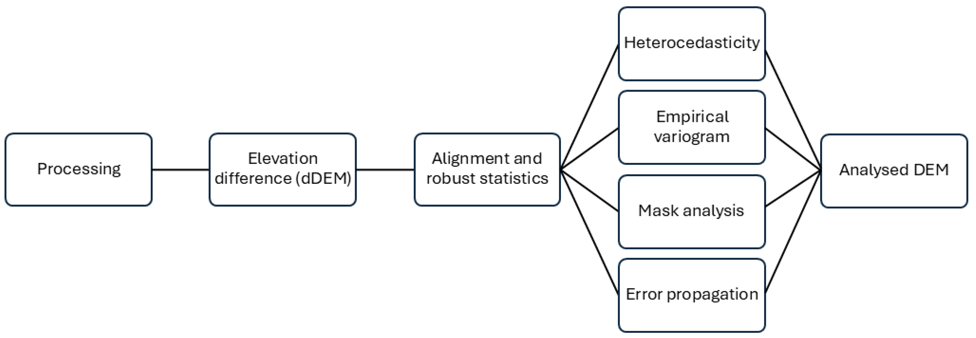 - Hugonnet, R.; Brun, F.; Berthier, E.; Dehecq, A.; Mannerfelt, E.S.; Eckert, N.; Farinotti, D. Uncertainty Analysis of Digital Elevation Models by Spatial Inference From Stable Terrain. IEEE J. Sel. Top. Appl. Earth Obs. Remote Sens. 2022, 15, 6456–6472. [Google Scholar] [CrossRef]