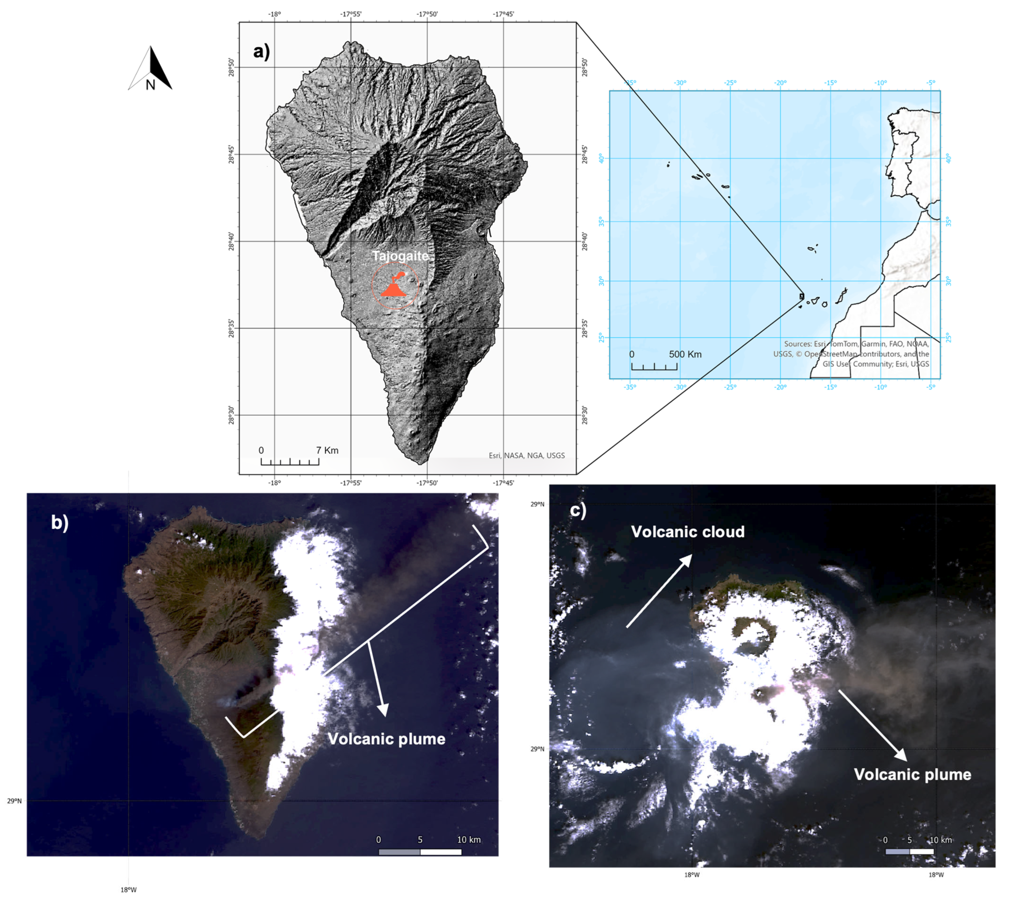- VAAC—Volcanic Ash Advisory Center of Tolouse. Available online: https://vaac.meteo.fr/volcanoes/la-palma/page/19/ (accessed on 14 May 2024).