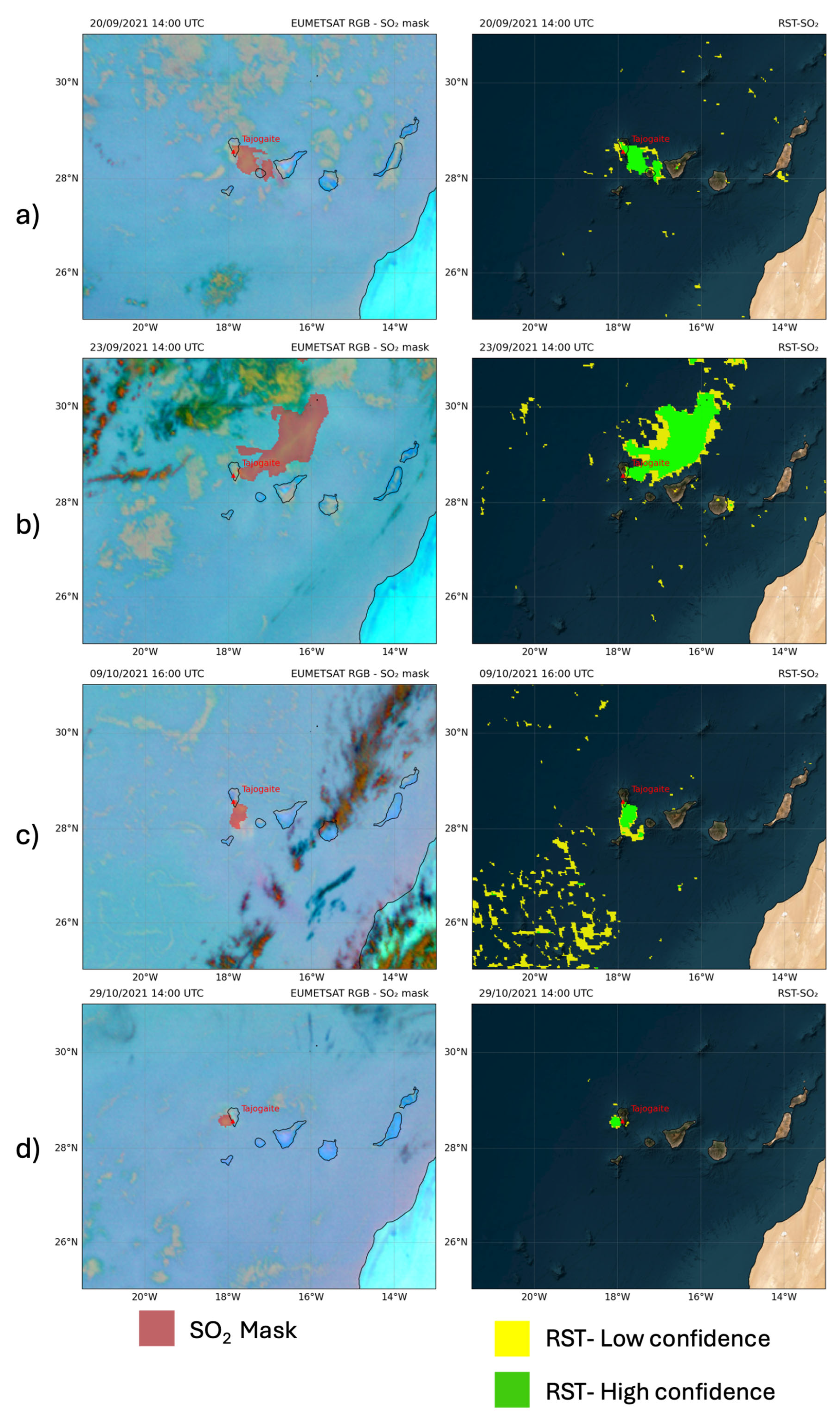 APA StyleMota, R., Filizzola, C., Falconieri, A., Marchese, F., Pergola, N., Tramutoli, V., Gil, A., & Pacheco, J. (2025). Robust Satellite Techniques (RSTs) for SO2 Detection with MSG-SEVIRI Data: A Case Study of the 2021 Tajogaite Eruption. Remote Sensing, 17(19), 3345. https://doi.org/10.3390/rs17193345