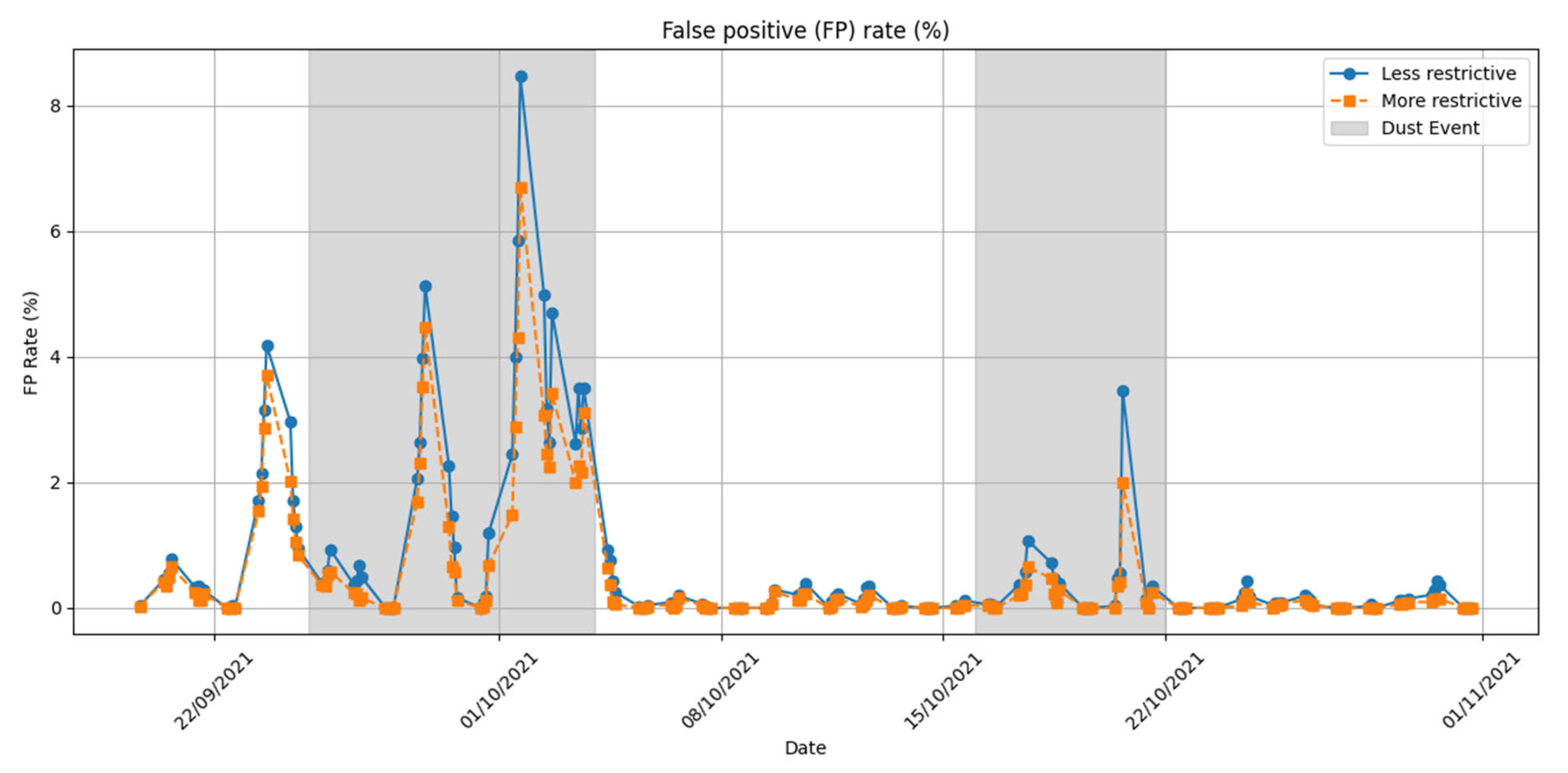 - False Positive (FP): The number of pixels where SO2 was incorrectly detected.