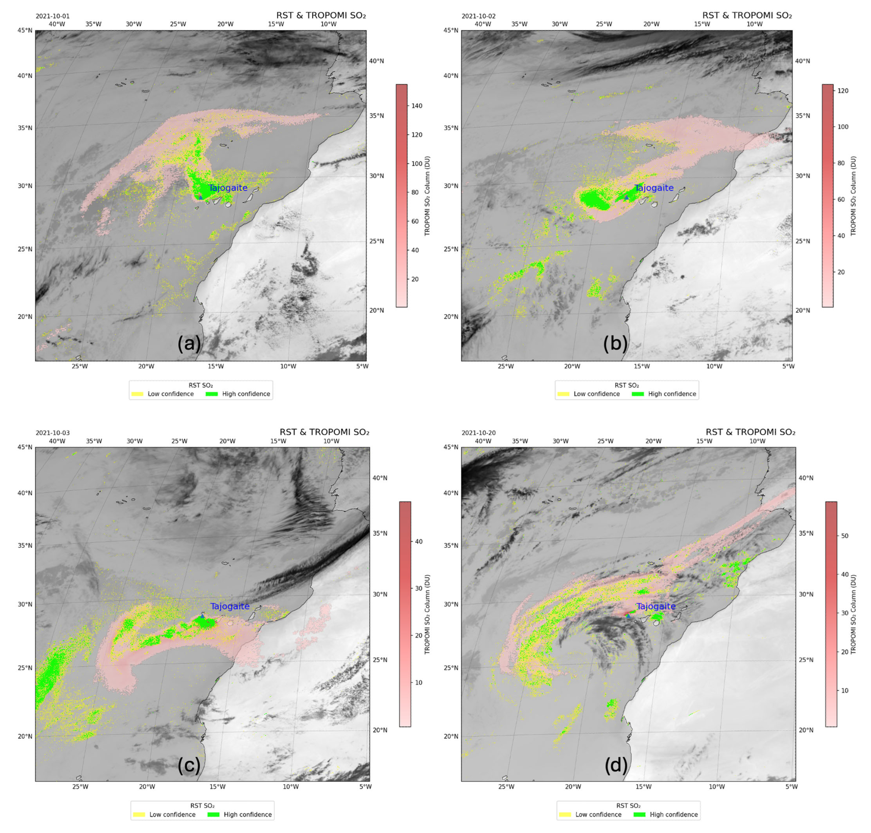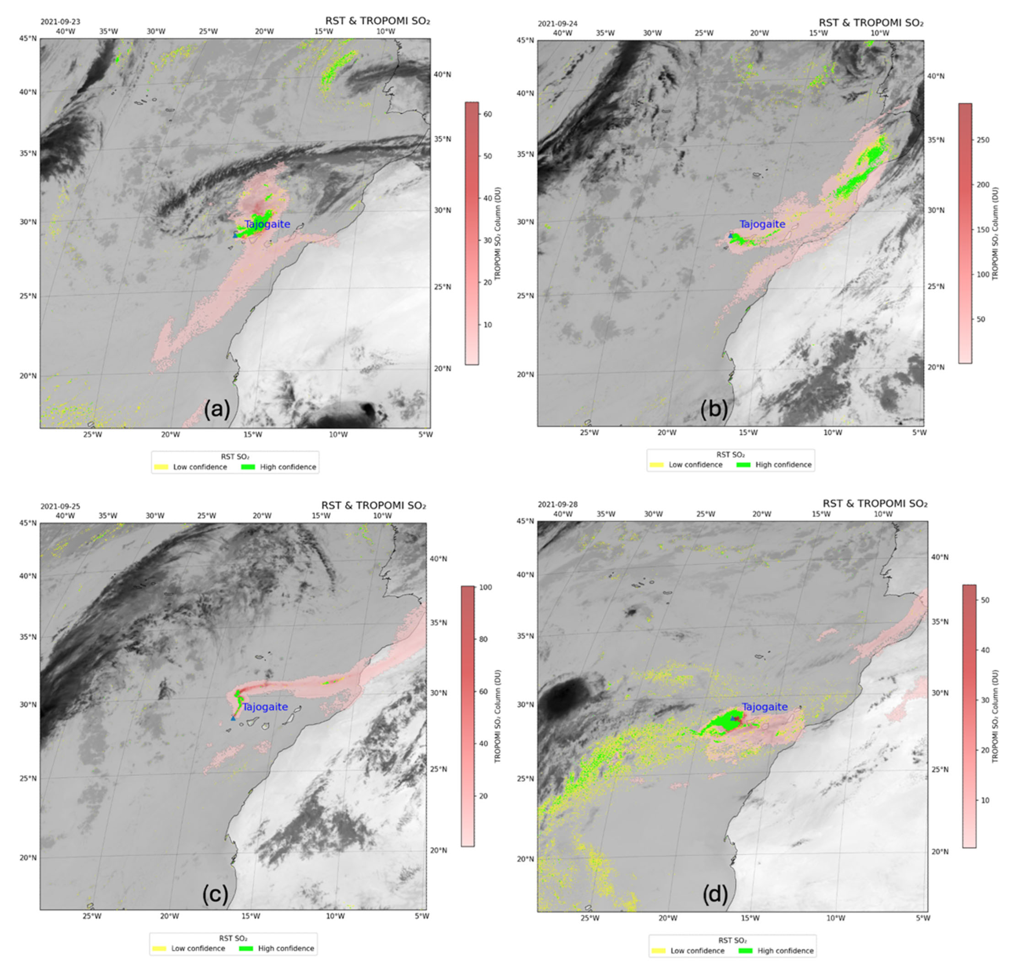 Mota, R.; Filizzola, C.; Falconieri, A.; Marchese, F.; Pergola, N.; Tramutoli, V.; Gil, A.; Pacheco, J. Robust Satellite Techniques (RSTs) for SO2 Detection with MSG-SEVIRI Data: A Case Study of the 2021 Tajogaite Eruption. Remote Sens. 2025, 17, 3345. https://doi.org/10.3390/rs17193345